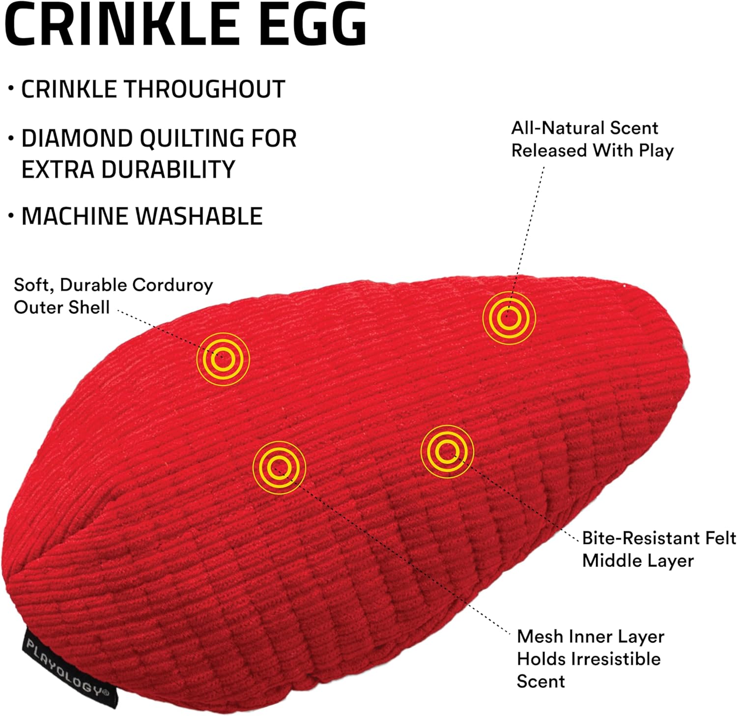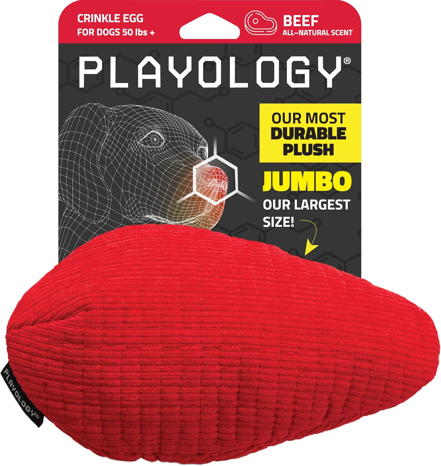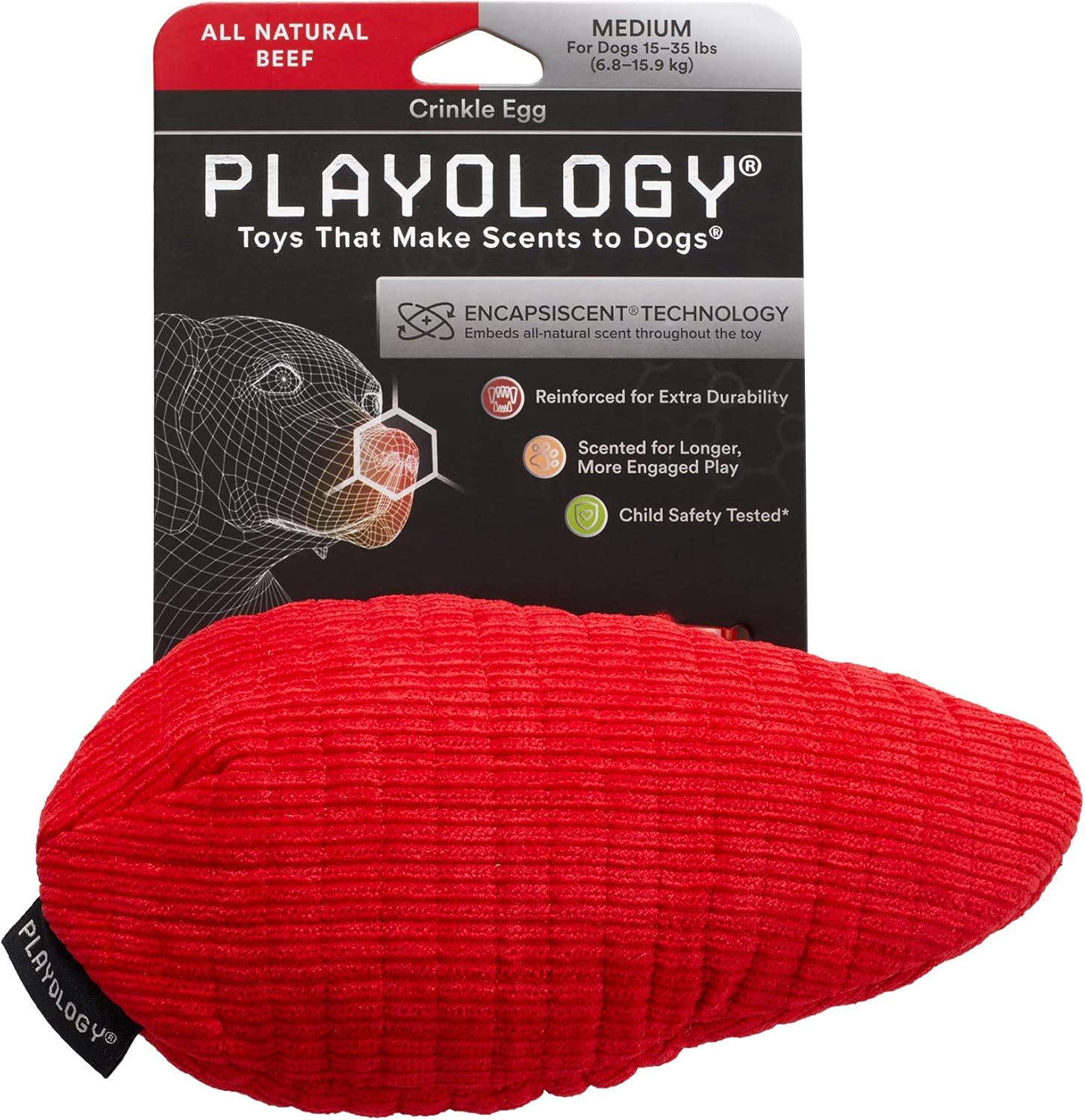 Playology Plush Crinkle Dog Toy -Crinkle Egg - Beef Scented Dog Toy, Engaging, All-Natural, and Interactive Non-Toxic Chew Toys