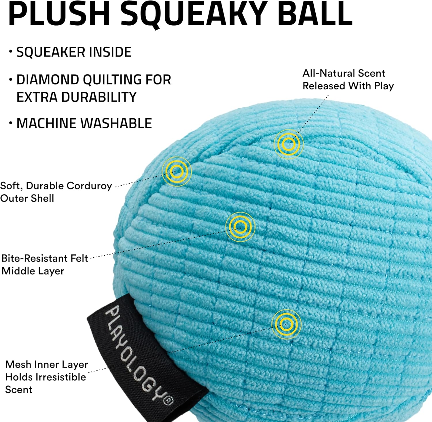 Playology Plush Squeaky Ball | Engaging All Natural Peanut Butter Scented Plush Dog Toy with Interactive Squeaker for Large to X-Large Dogs 50lbs & up | Easy to Clean | Squeak, Chew, Fetch, and Play