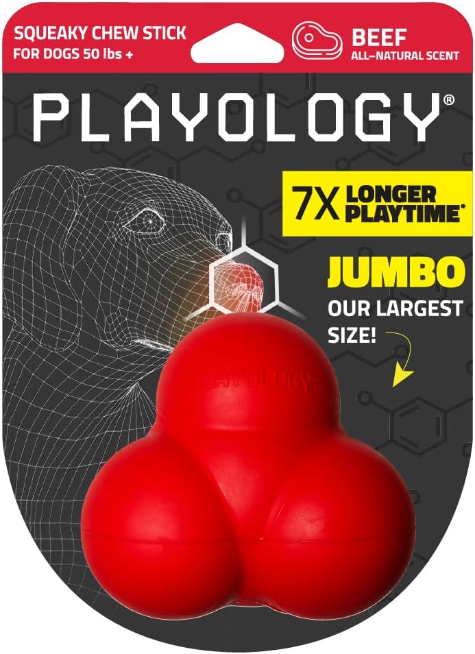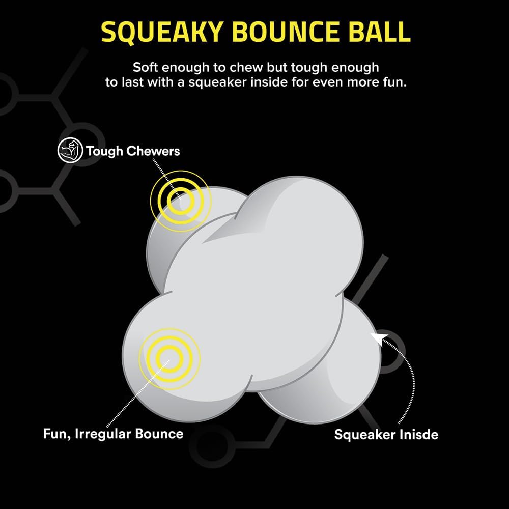 MEET THE SQUEAKY BOUNCY DOG BALL BY PLAYOLOGY: Featuring an exciting irregular bounce and a fun squeaky...