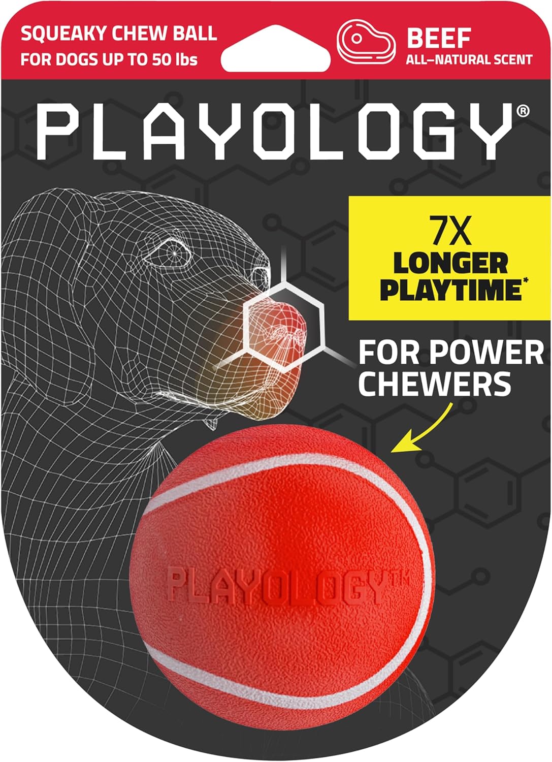 Playology Squeaky Chew Ball for Dogs | Engaging All-Natural Beef Scented Toy for Medium Dogs up to 50lbs | Squeak, Fetch, and Play
