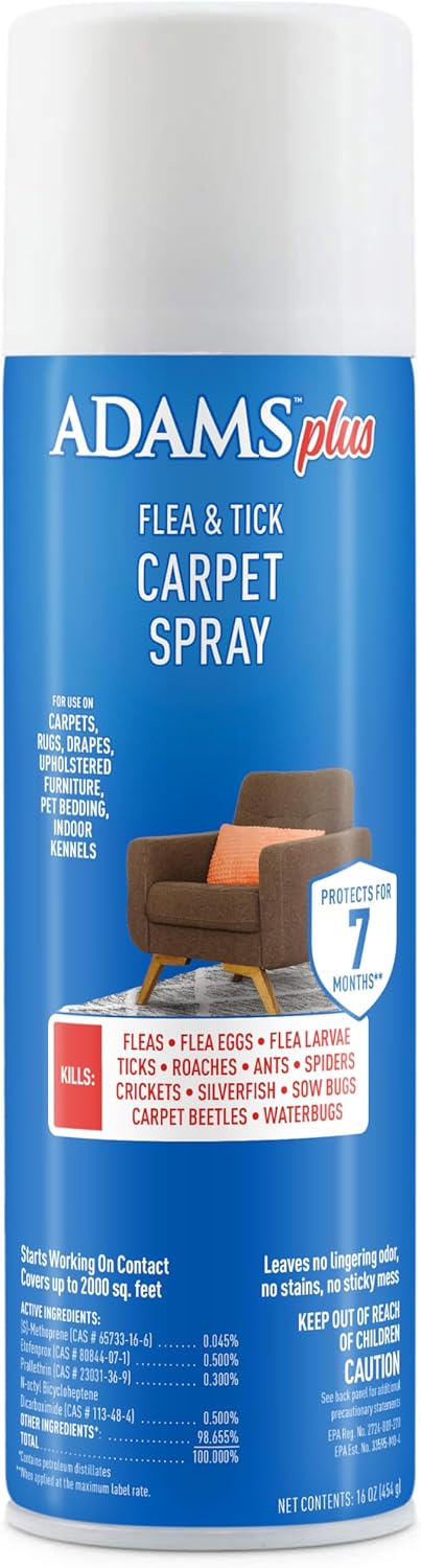 Plus Flea & Tick Carpet Spray, Kills Fleas, Flea Eggs, Flea Larvae, Ticks, Ants, Roaches, Spiders, Waterbugs & Many Other Listed Nuisance Pests In The Carpet, Treats Up to 2,000 Sq Ft, 16 Ounces