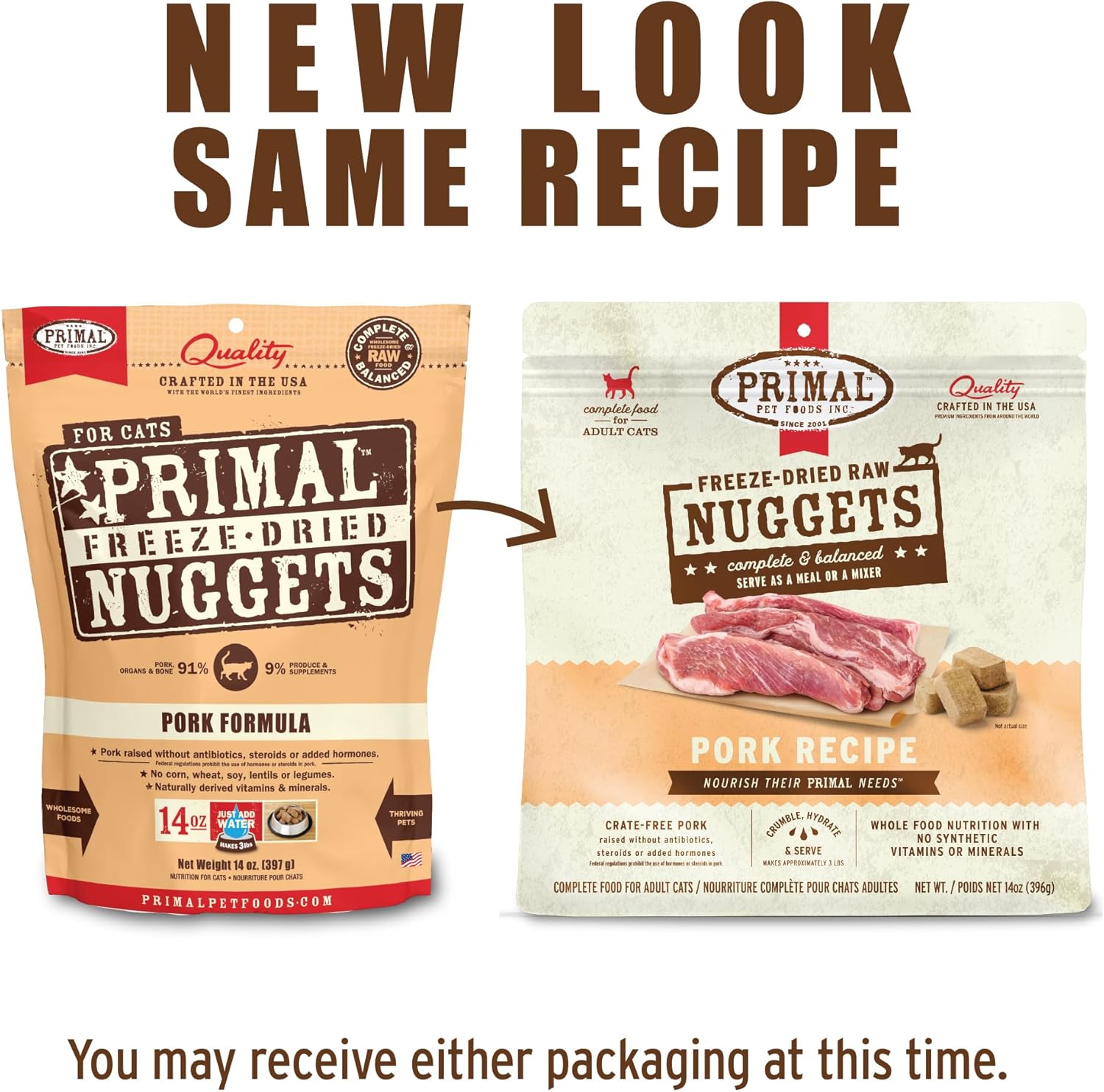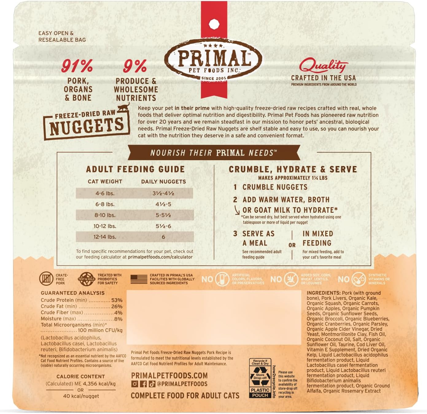 Primal Freeze Dried Raw Cat Food Nuggets Pork, Complete & Balanced Meal or Topper, Premium, Healthy, Grain Free, High Protein Raw Cat Food with Probiotics