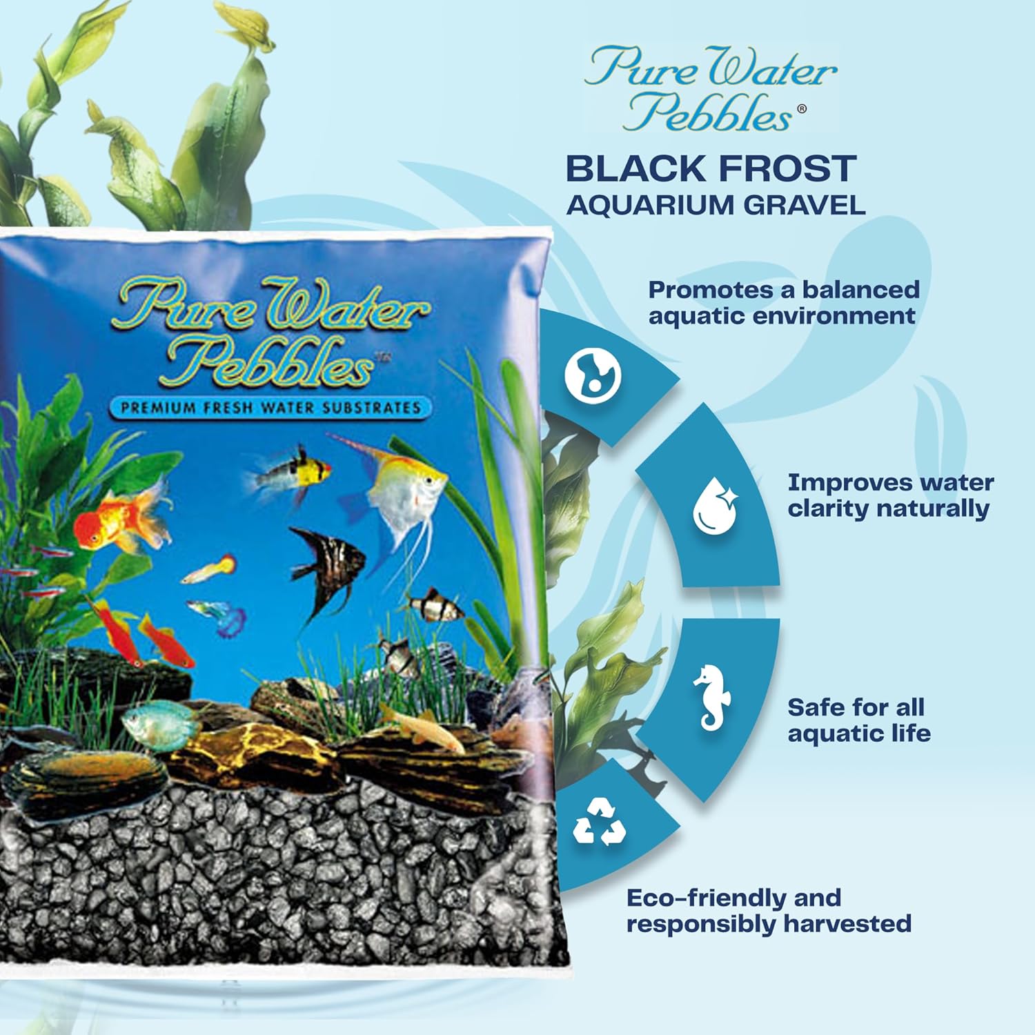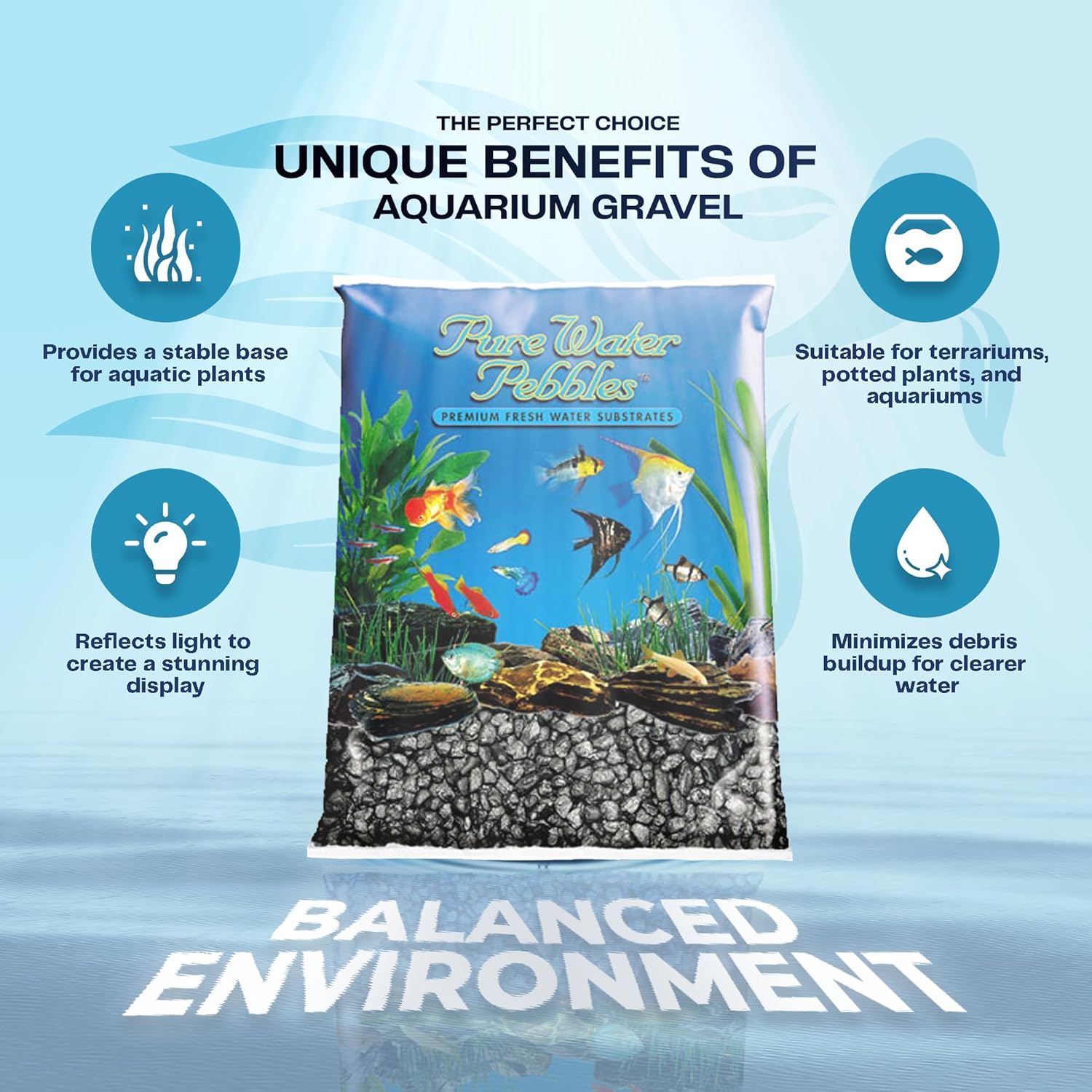 Pure Water Pebbles Jet Black Aquarium Gravel - Non-Toxic, Colorfast, Vibrant Substrate for Aquariums, Terrariums, Ponds & Crafts