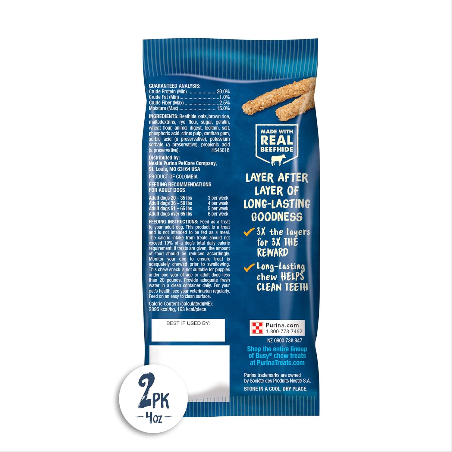 Purina Busy Rawhide Small/Medium Breed Dog Bones, Chewnola With Oats & Brown Rice - 2 ct. Pouches