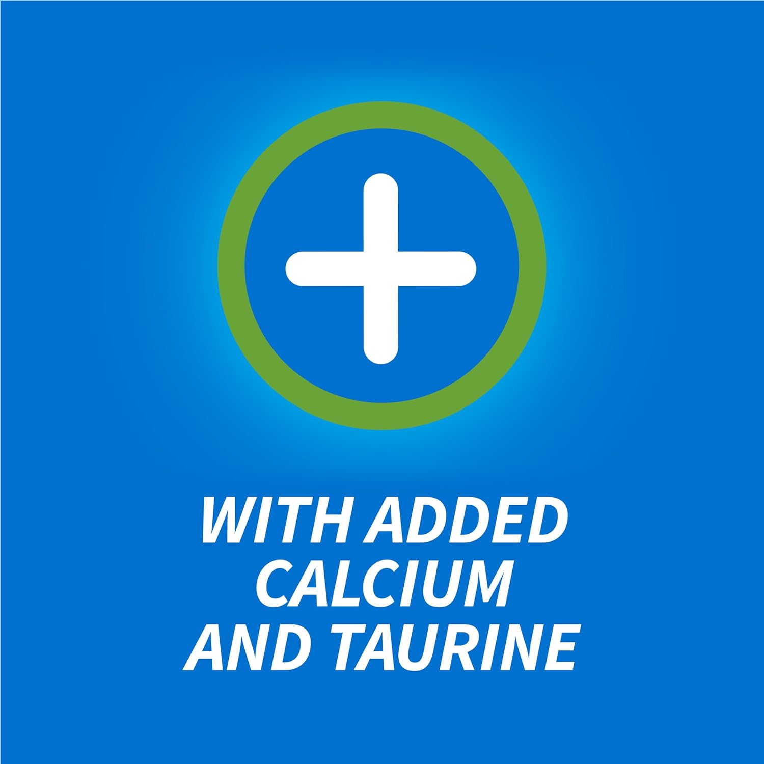- Made with wholesome ingredients. Contains added calcium and taurine