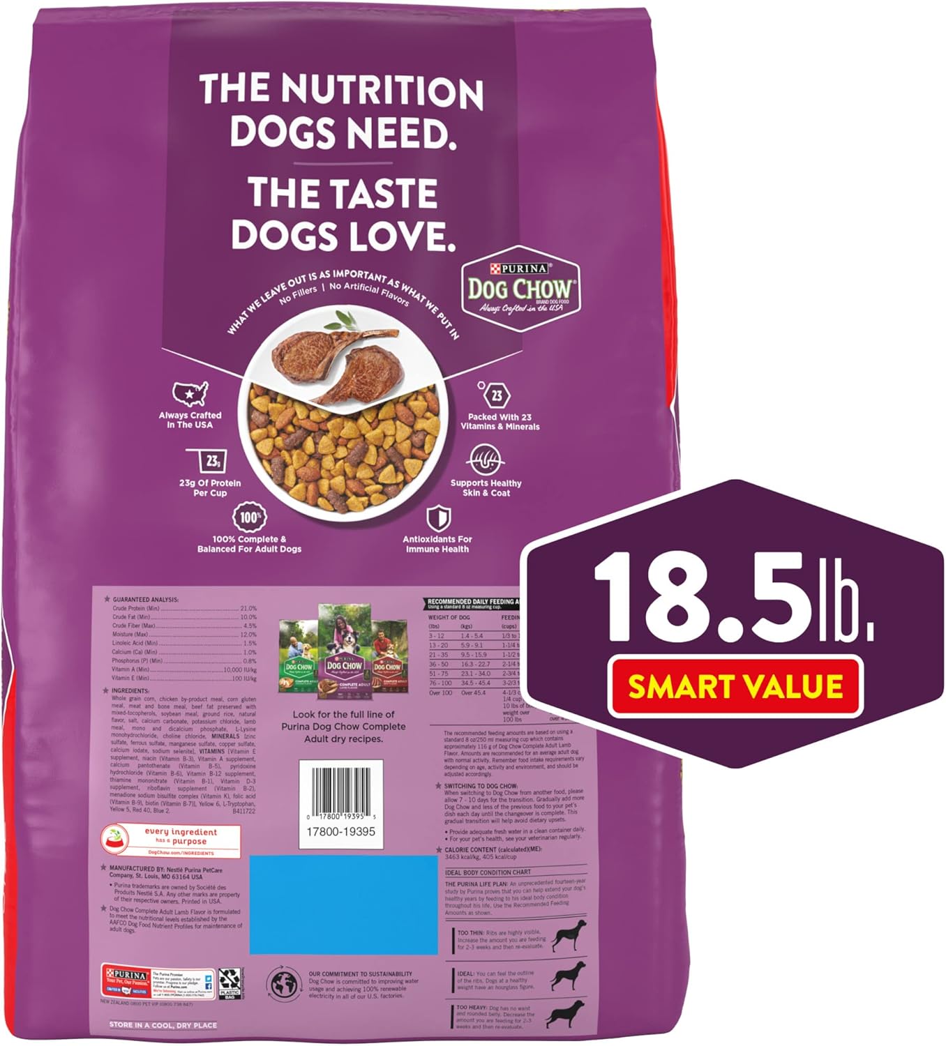Purina Dog Chow Complete Adult Dry Dog Food Kibble with Lamb Flavor - 18.5 lb. Bag