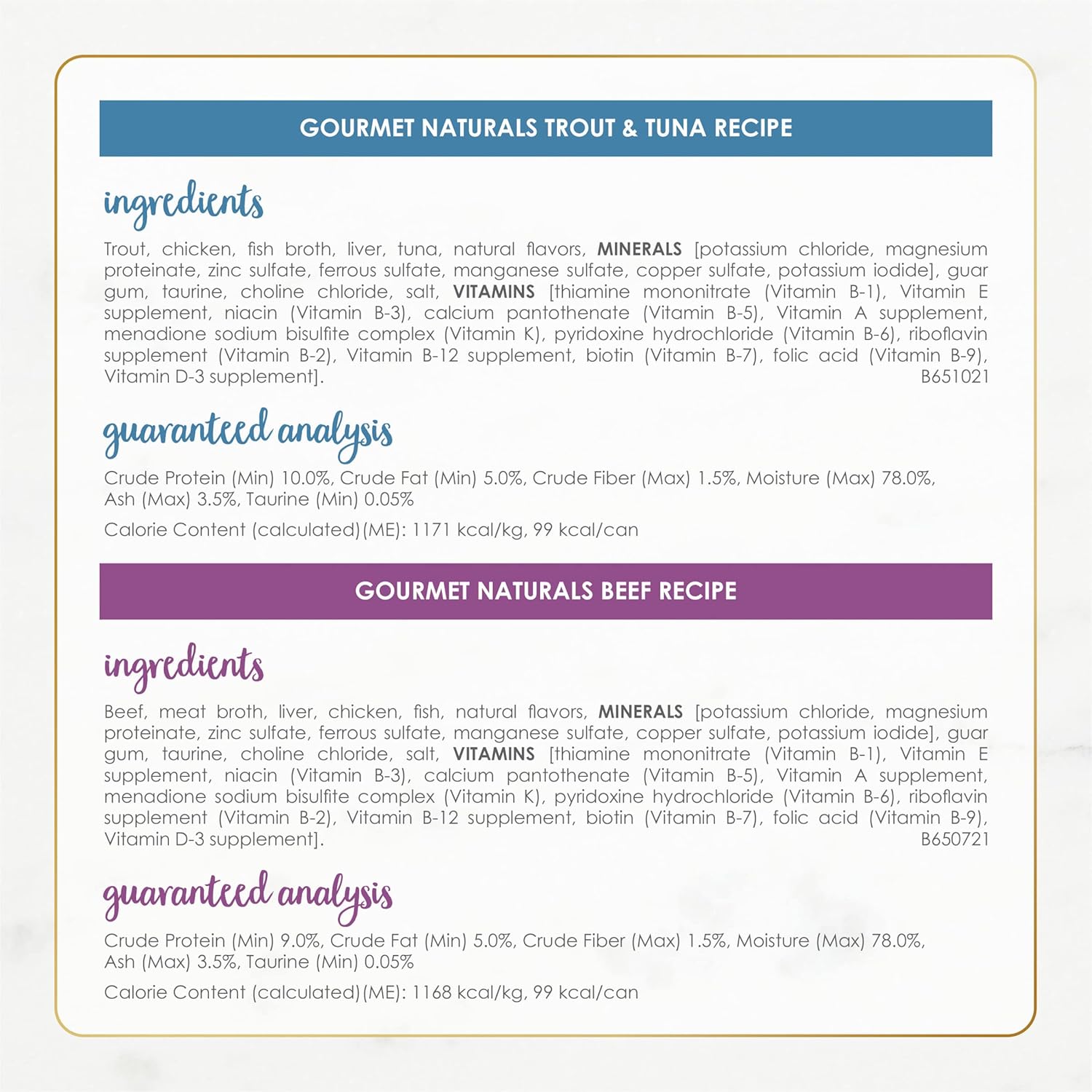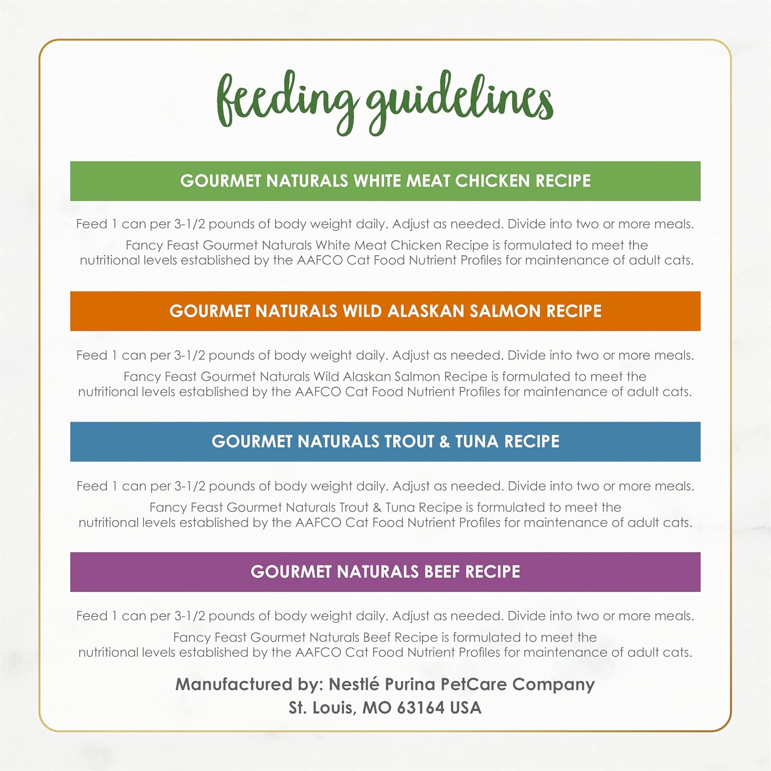 Purina Fancy Feast Grain Free Wet Cat Food Pate Variety Pack Gourmet Naturals–Beef, Chicken, Salmon, Trout and Tuna - (2 Packs of 12) 3 oz. Cans