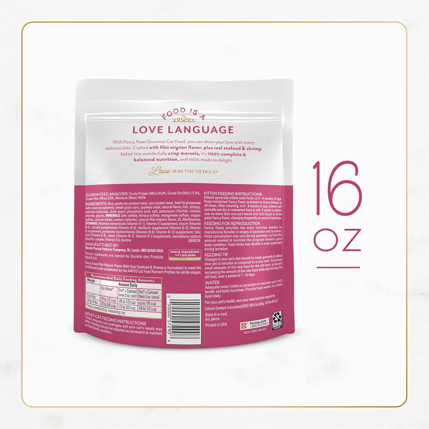 Purina Fancy Feast Dry Cat Food Filet Mignon Flavor with Seafood and Shrimp - (Pack of 4) 16 oz. Bags