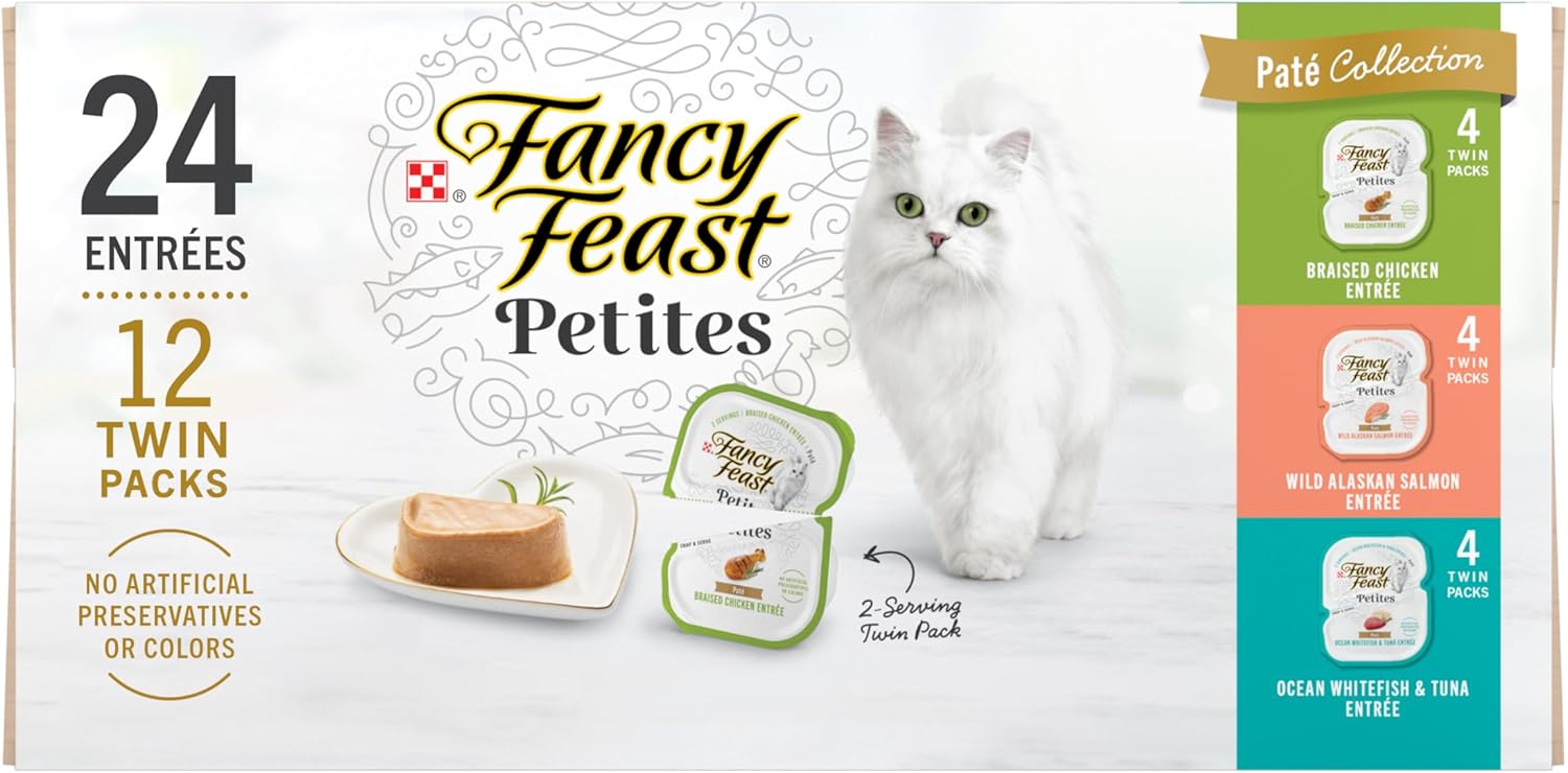 - Fancy Feast pate cat food variety pack with complete and balanced nutrition