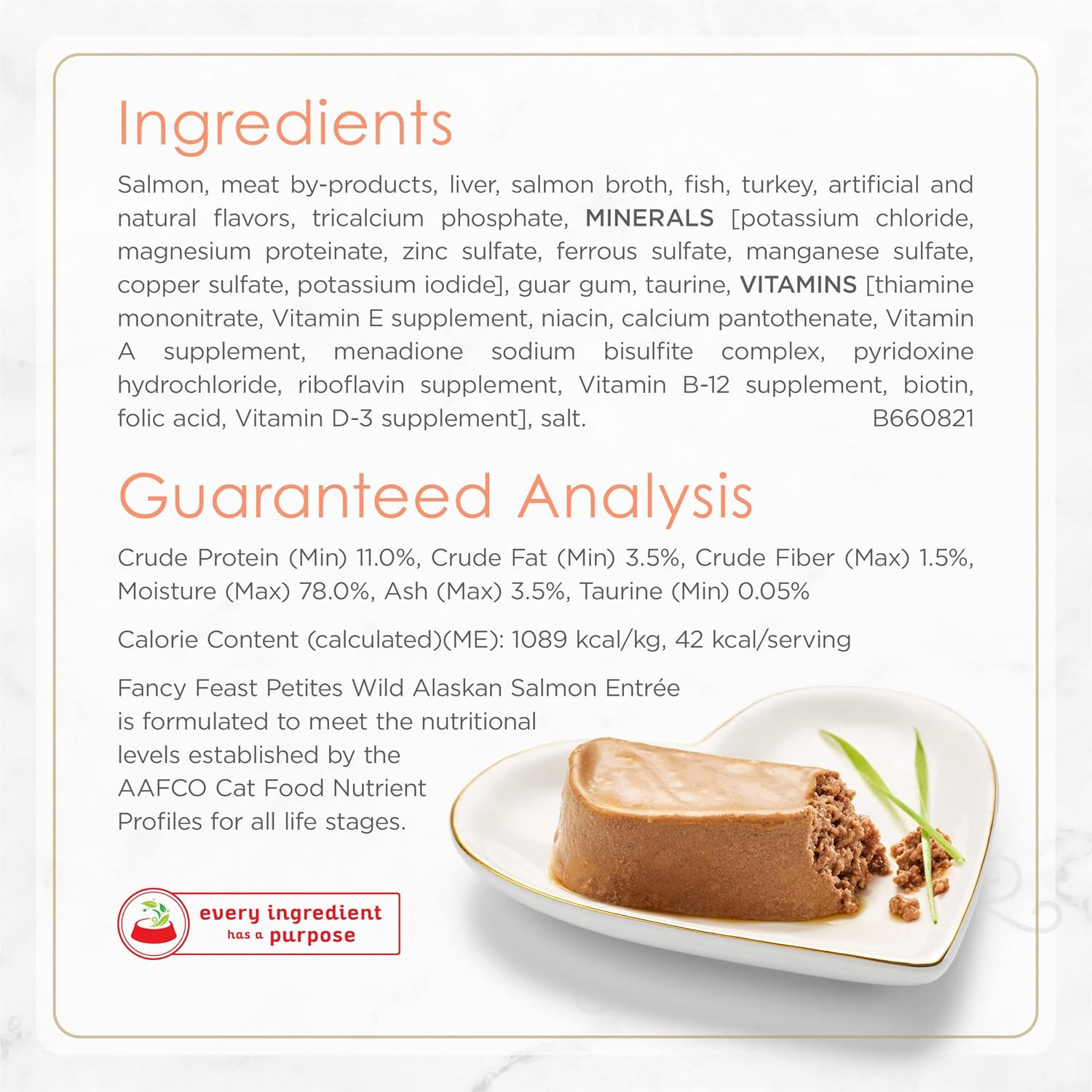 Purina Fancy Feast Gourmet Pate Wet Cat Food, Petites Wild Alaskan Salmon Entree - (Pack of 12) 2.8 oz. Tubs