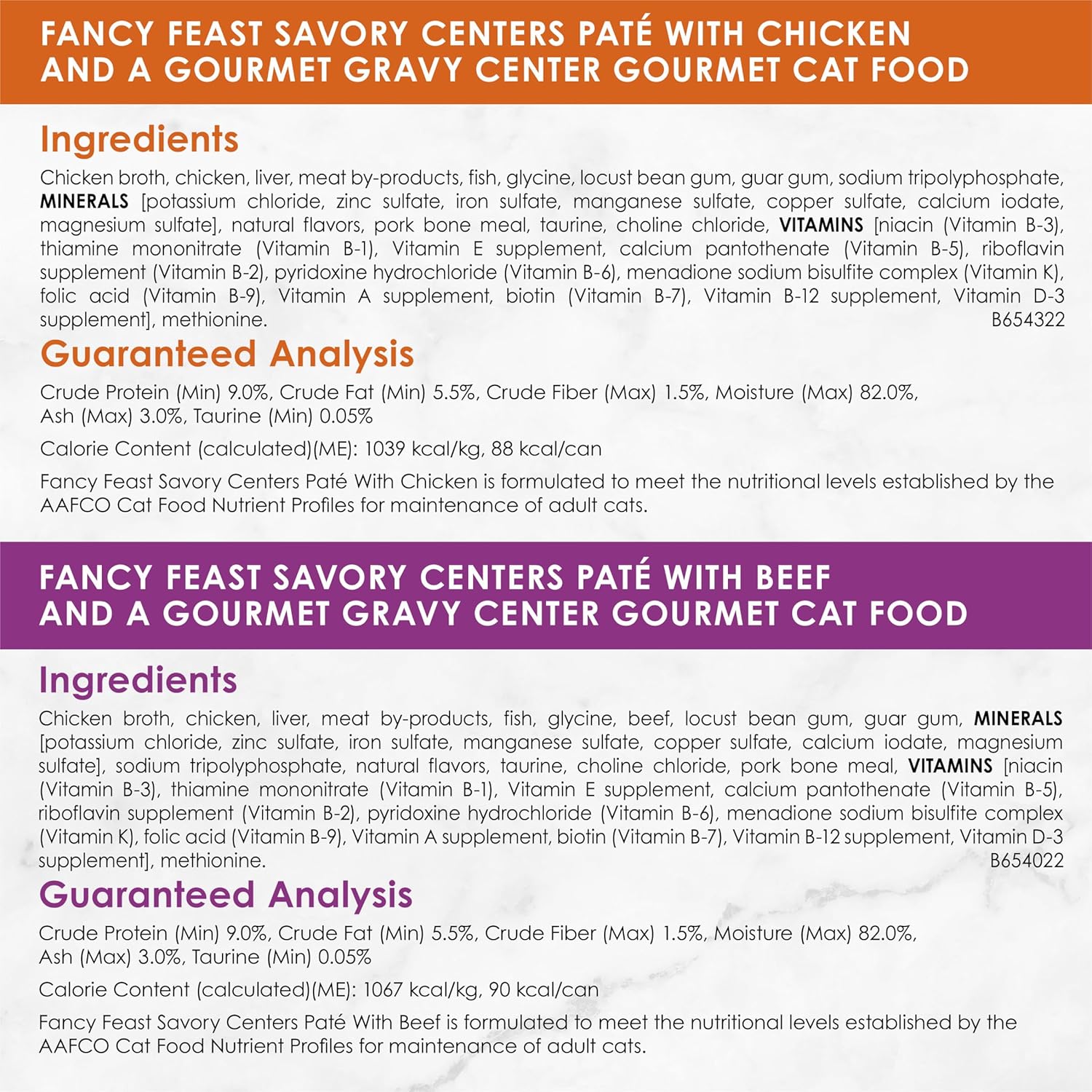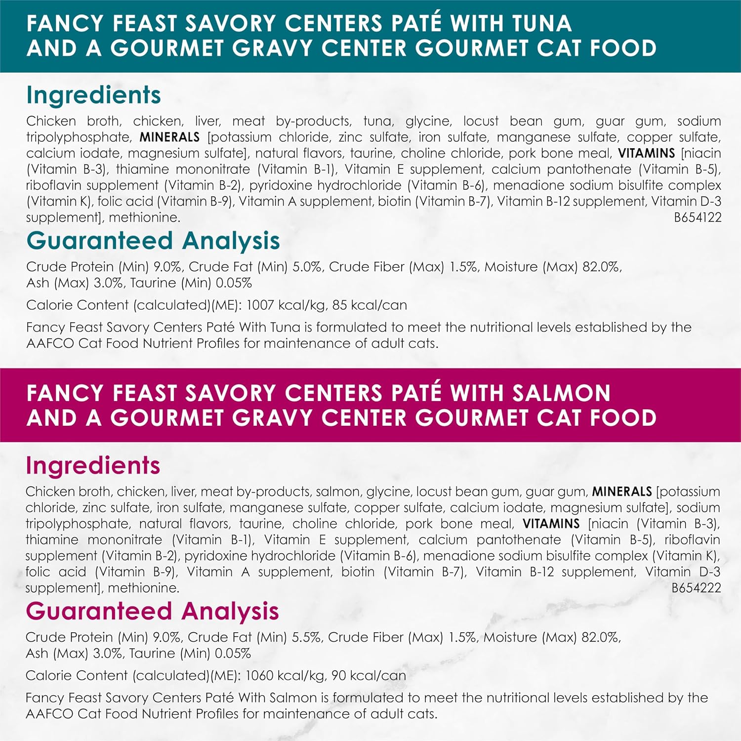 Purina Fancy Feast Pate Wet Cat Food Variety Pack, Savory Centers Pate With a Gravy Center - (2 Packs of 12) 3 oz. Pull-Top Cans