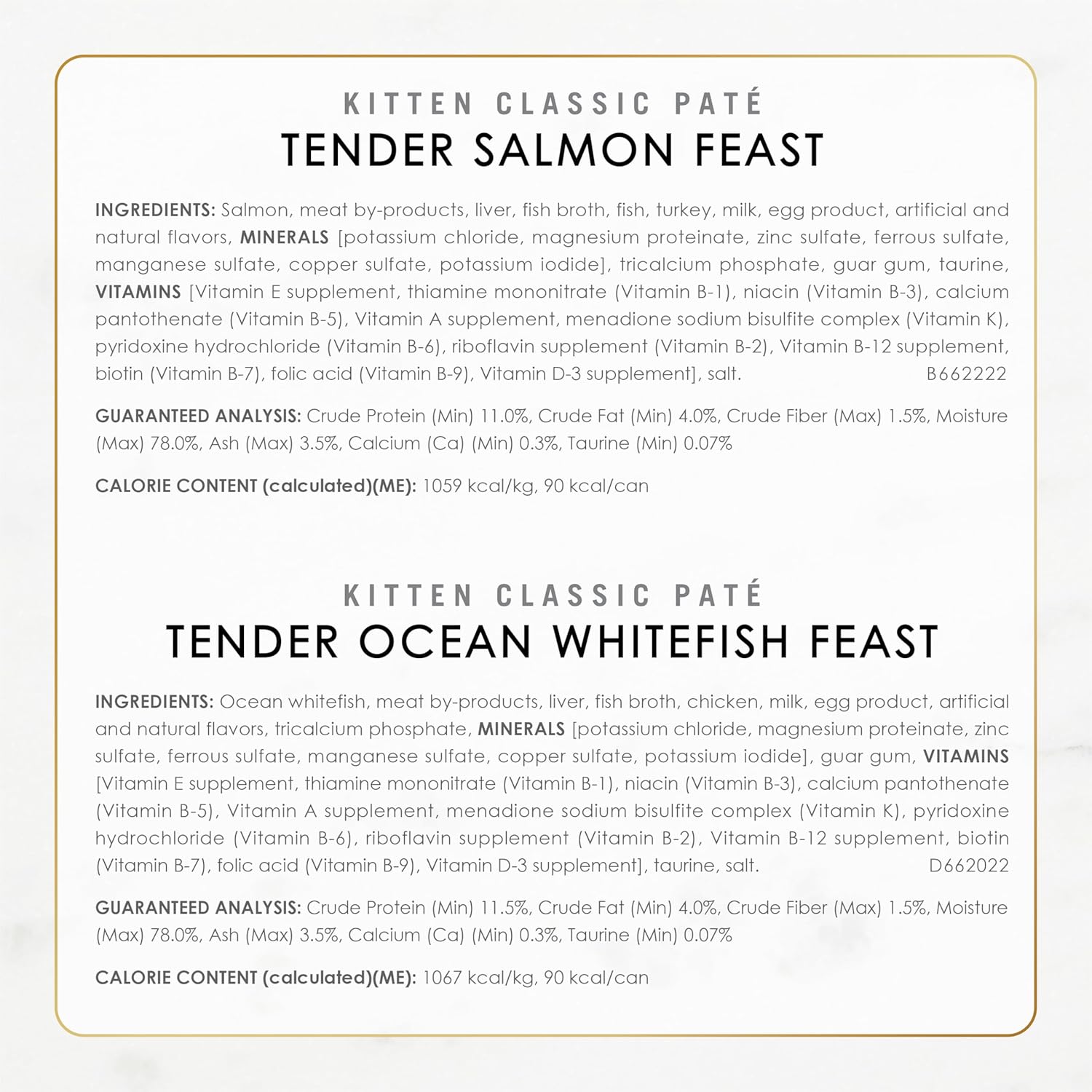 Purina Fancy Feast Tender Ocean Whitefish, Turkey, Chicken and Salmon Feasts Wet Kitten Food Variety Pack - (Pack of 24) 3 oz. Boxes