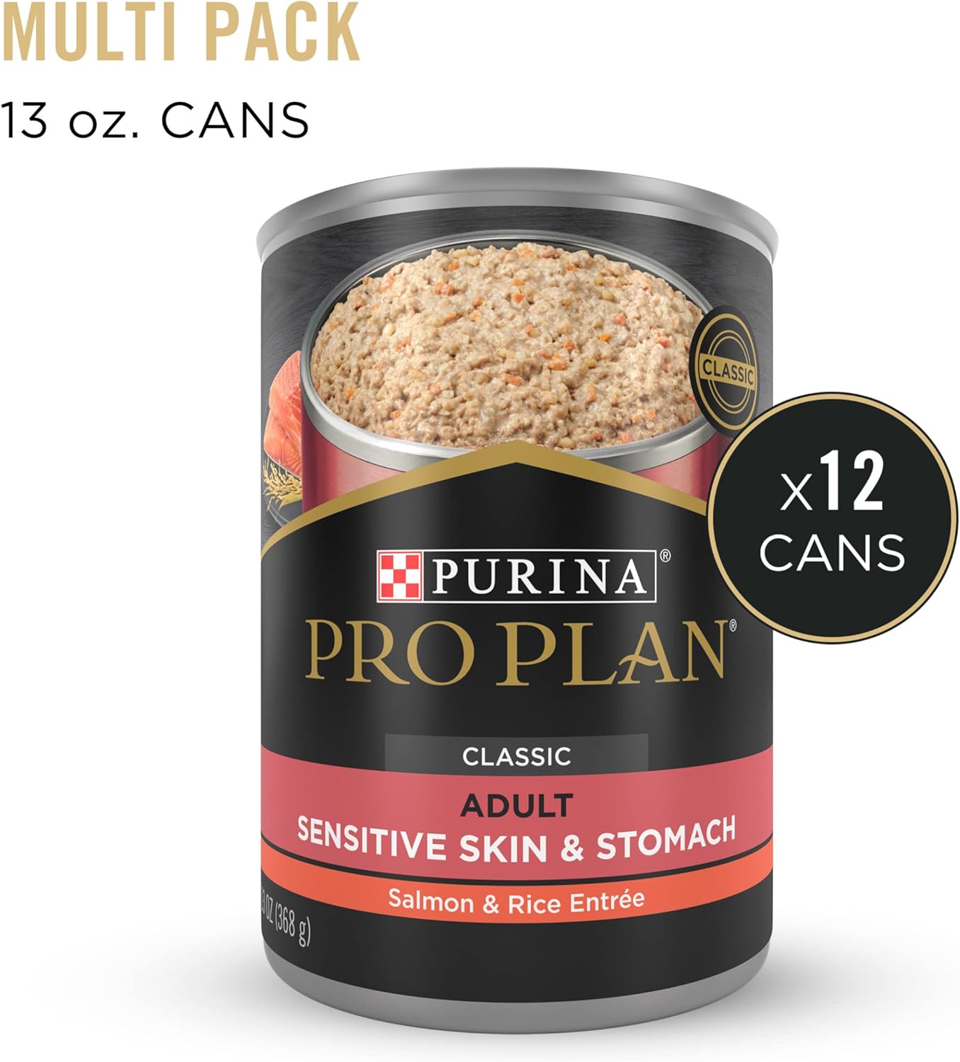 Purina Pro Plan Canned Dog Food, Sensitive Skin & Stomach Salmon & Rice, 13 oz, 12 Pack
