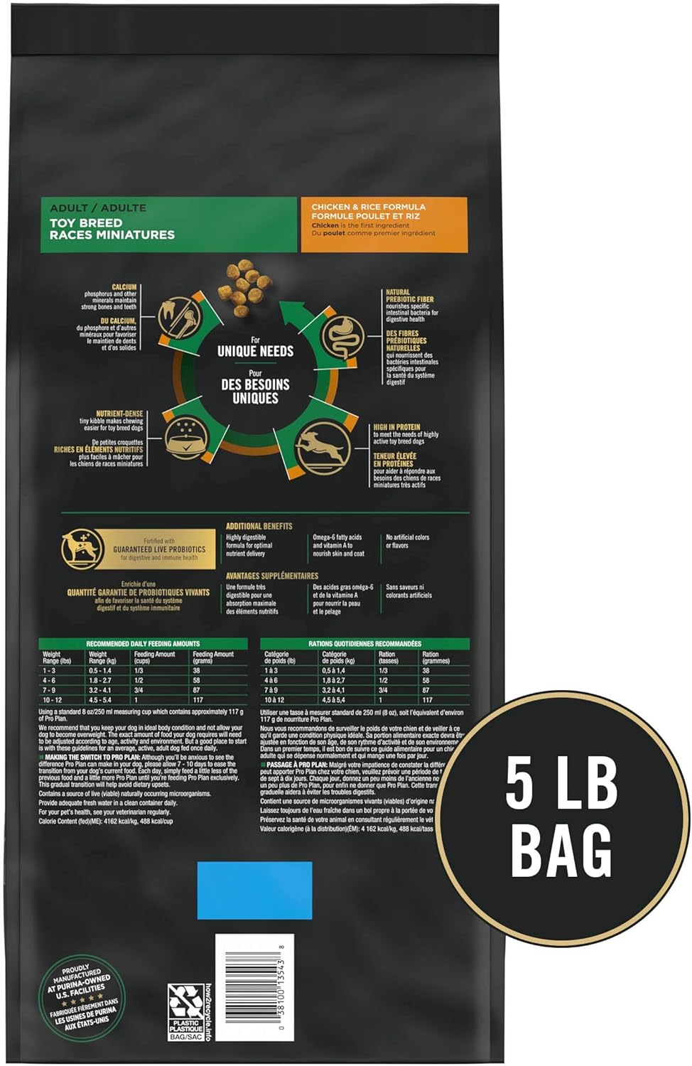 Purina Pro Plan Toy Breed Dog Food With Probiotics for Dogs, Chicken & Rice Formula - 5 lb. Bag