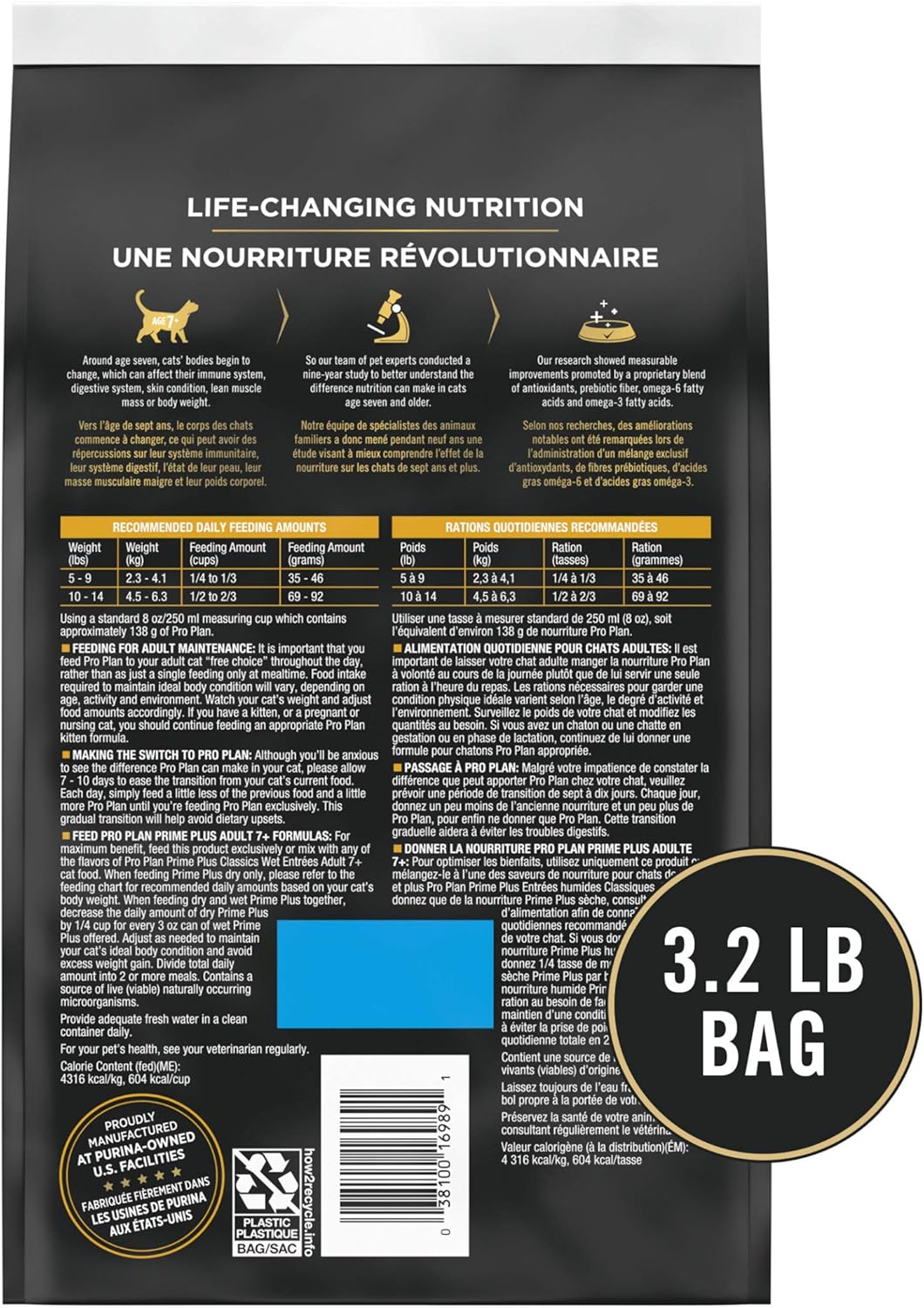 Purina Pro Plan Senior Cat Food With Probiotics for Cats, Chicken and Rice Formula - 3.2 lb. Bag