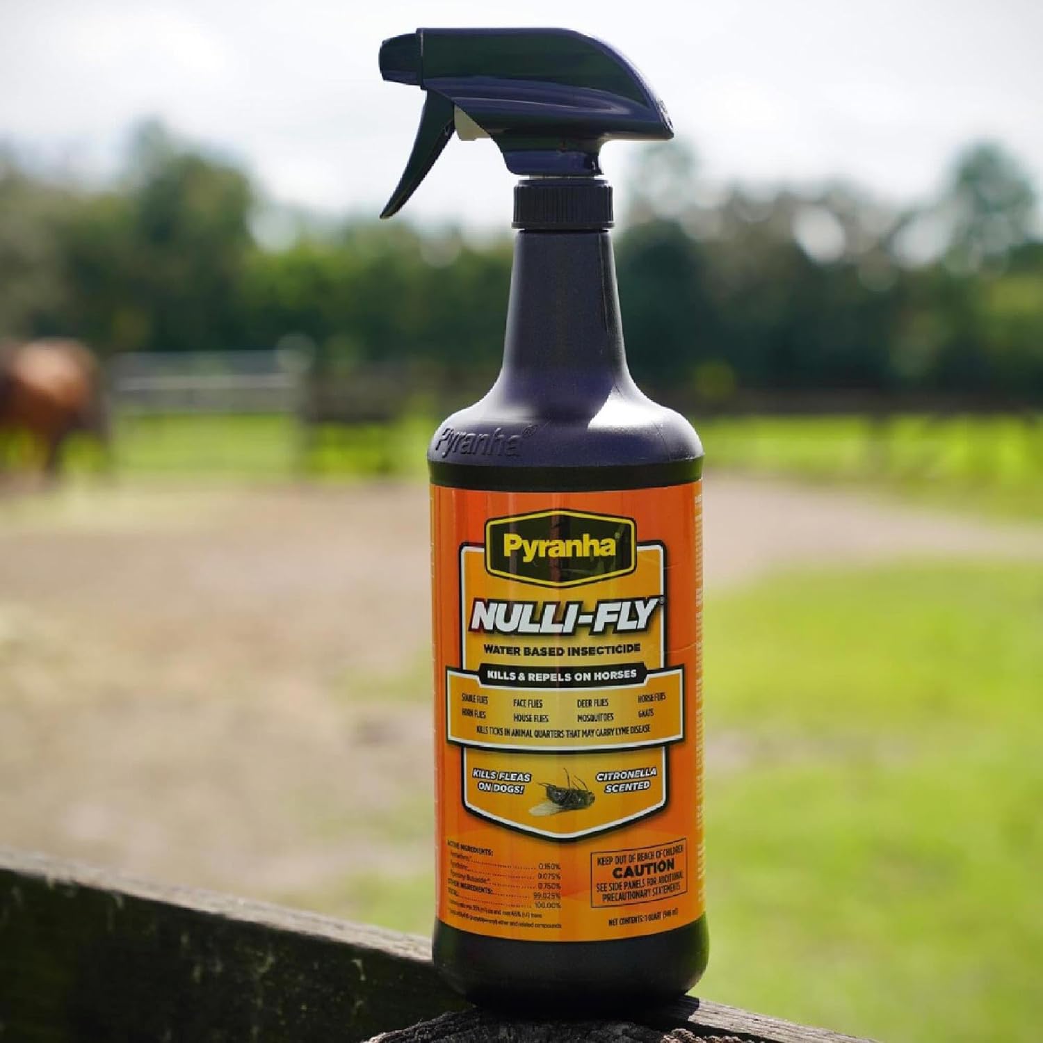 A ready-to-use, water-based fly spray with citronella scent, designed for horses with sensitive skin. It provides long-lasting protection without attracting dust or grime. Can be sprayed or wiped on horses for quick knockdown of multiple insects.