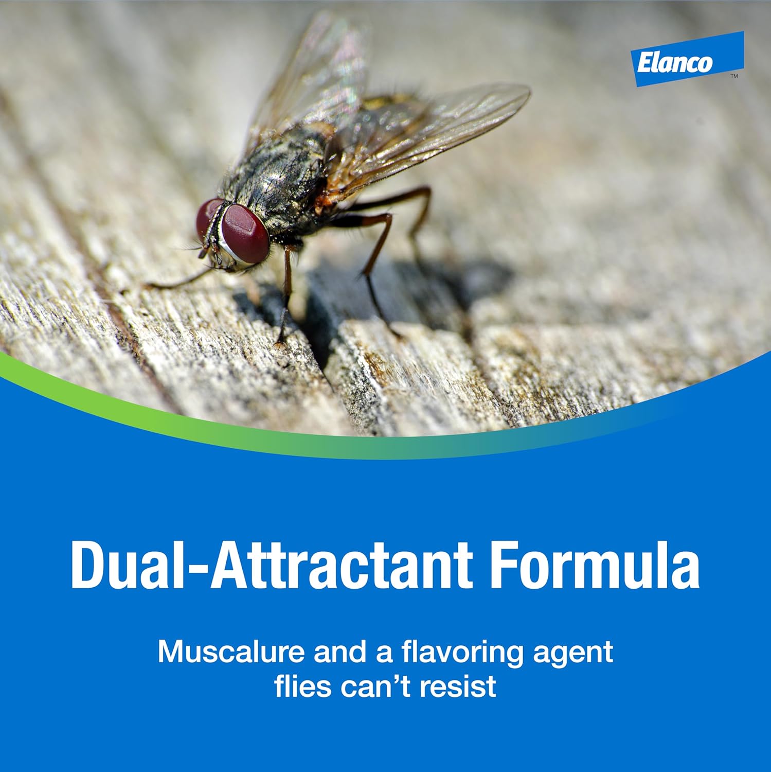 Contains two attractants: muscalure and a flavoring agent that flies can’t resist