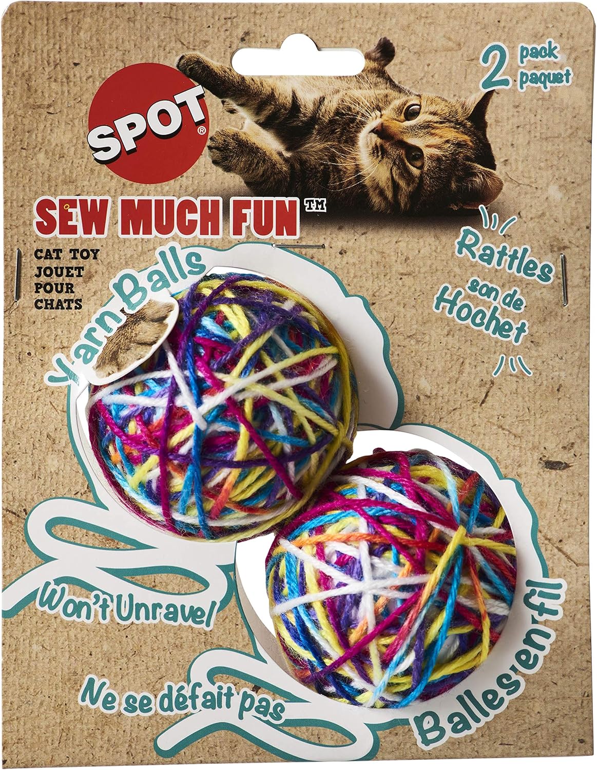 SPOT Ethical Products Sew Much Fun/Yarn Ball Cat Toy / 2.5" / 2Pack, Multicolor
