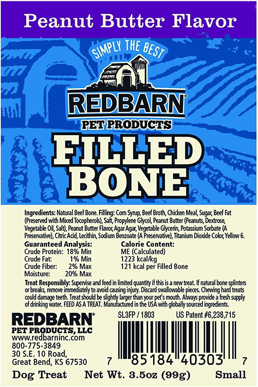 Redbarn Filled Dog Bones, Natural Long-Lasting Dental Treats; Suitable for Aggressive Chewers(Peanut Butter)