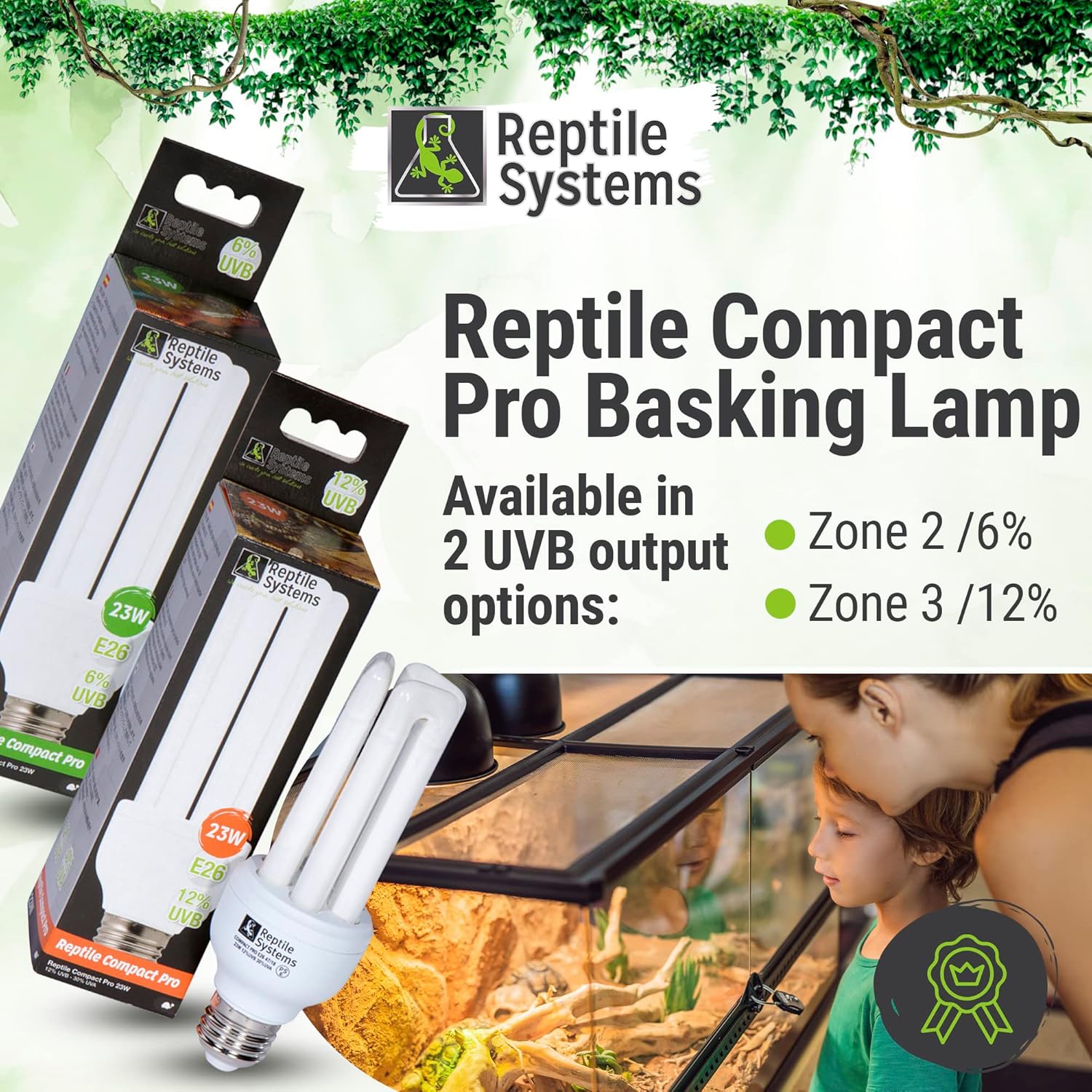 Reptile Compact Pro Basking Lamp – Ferguson Zone 2 Lamp: 6% UVB, Forest – Full Spectrum UVA & UVB Amphibian & Reptile Lighting – 7.09 Inch Fixture – 23 Watts