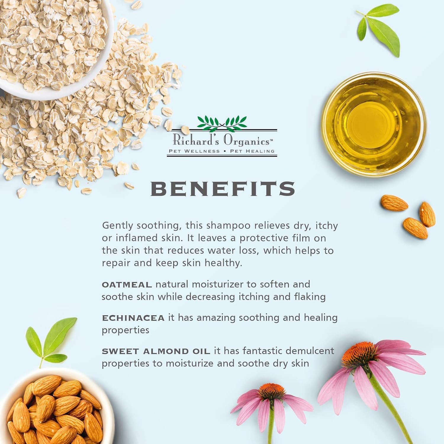 Richard’s Organics Moisturizing Shampoo for Dogs – Pet Shampoo with Oatmeal, Echinacea, Sweet Almond Oil to Soothe/Protect Dry, Itchy, Inflamed Skin