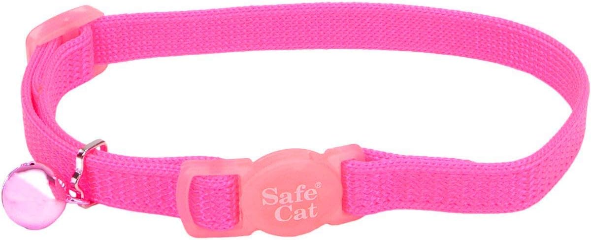 Safe Cat Adjustable Snag-Proof Breakaway Collar with Bell, Neon Pink, Girth Size 8" to 12"