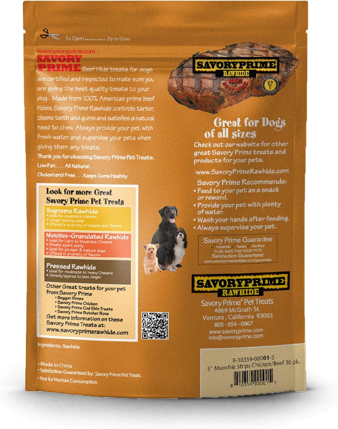 Savory Prime 36-Pack Munchie Strips, 5-Inch, Chicken And Beef