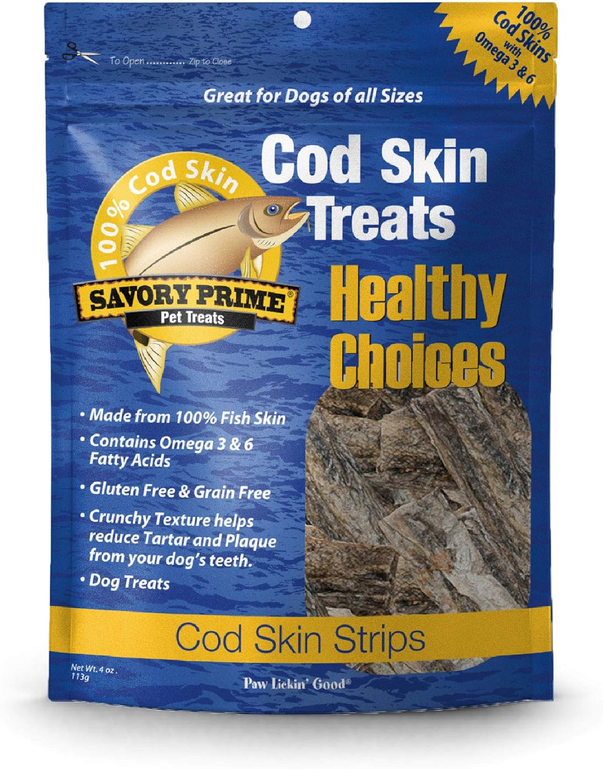 Savory Prime Cod Skin Fish Strips , All Breed Sizes