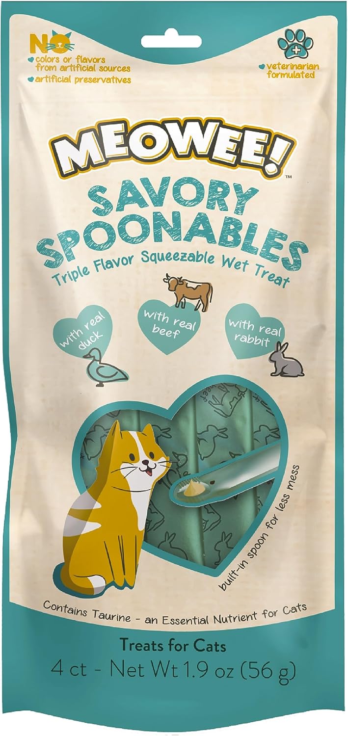 Savory Spoonables with Real Duck, Beef & Rabbit, Tube, Triple Flavor Squeezable Lickable Wet Treats for Cats with Built-in Spoon for Less Mess
