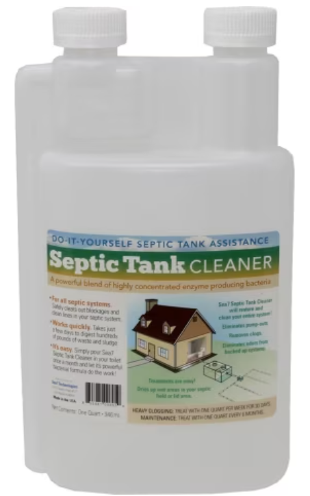 Sea7® Septic Tank Cleaner is a powerful, fast-acting solution designed to maintain clean and efficient septic systems. Formulated to digest hundreds of pounds of waste and sludge within days, it eliminates blockages, prevents clogs, and removes unpleasant odors. Safe and easy to use, Sea7® keeps your septic field and tank working smoothly without frequent pump-outs.