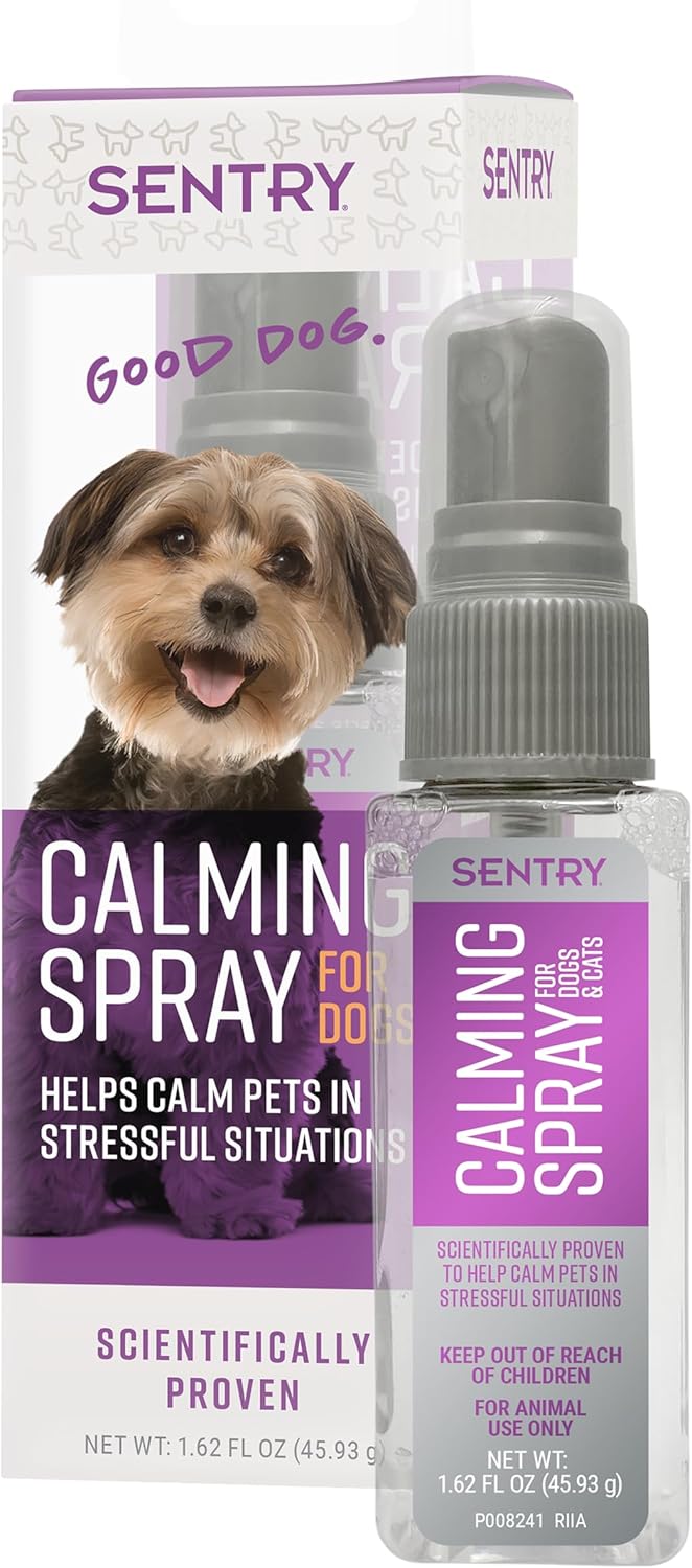 SENTRY PET Care Sentry Calming Spray for Dogs, Uses Pheromones to Reduce Stress, Easy Spray Application, Helps Dogs with Separation, Travel, Loud Noises, and Anxiety, Packaging May Vary