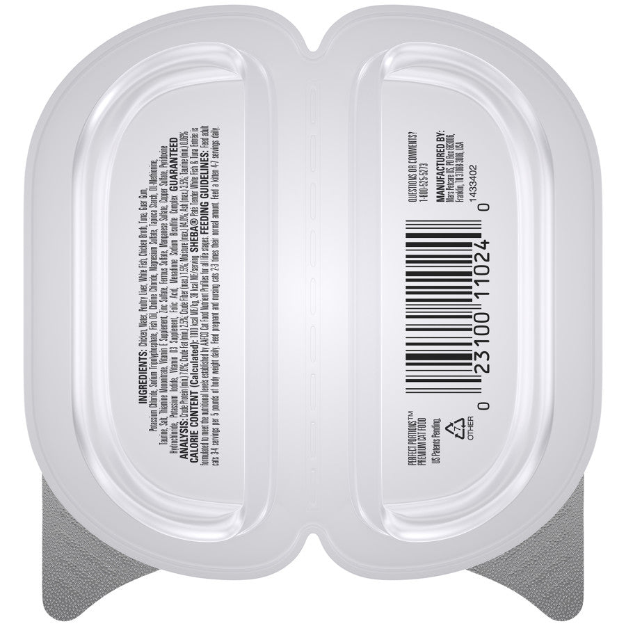 Your cat knows what they want and knows how to get it. Give them SHEBA Wet Cat Food. Each SHEBA Wet Cat Food Paté PERFECT PORTIONS tray is made without grain* or corn, and has no artificial flavors or preservatives, so you can feel good about feeding it to them for every meal. With a light and delectable texture, this whitefish and tuna flavored and protein rich soft pate entrée is truly enticing… your cat will devour every tasty bite. And this zero grain* cat food comes in two convenient right-sized serving trays, so you’re not left with any messy leftovers: Just snap, peel, and serve! Show your cat some love; whether your fancy feline is a kitten, adult cat, or senior cat, this gourmet wet food is sure to satisfy even the pickiest appetite. Savor every delicious moment with SHEBA Wet Cat Food: What Cats Want. * Trace amounts may be present due to cross-contact during manufacturing.
