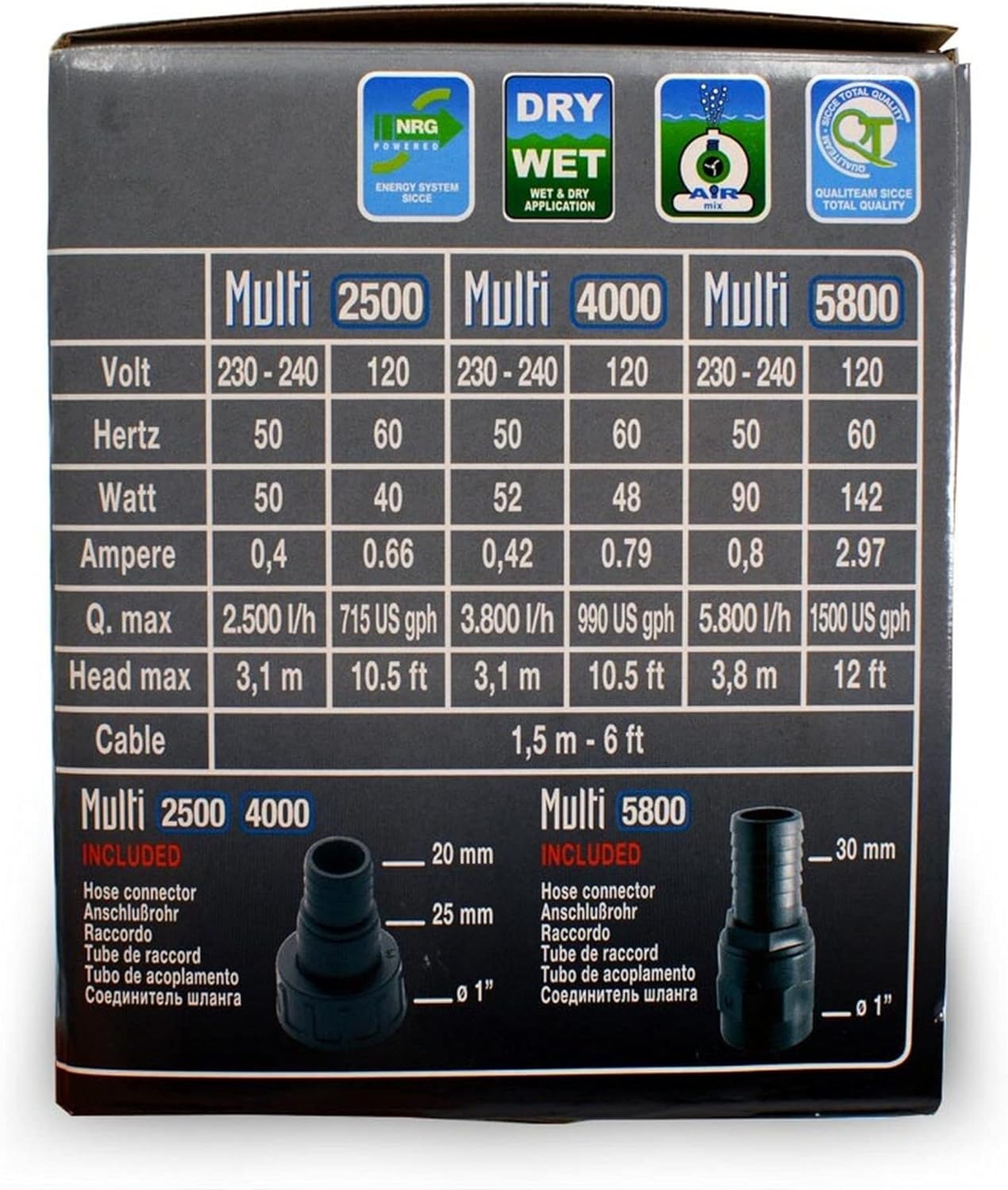 SICCE MULTI 5800 Multifunction Aquarium Pump, 1500 GPH, designed for submerged and in-line use