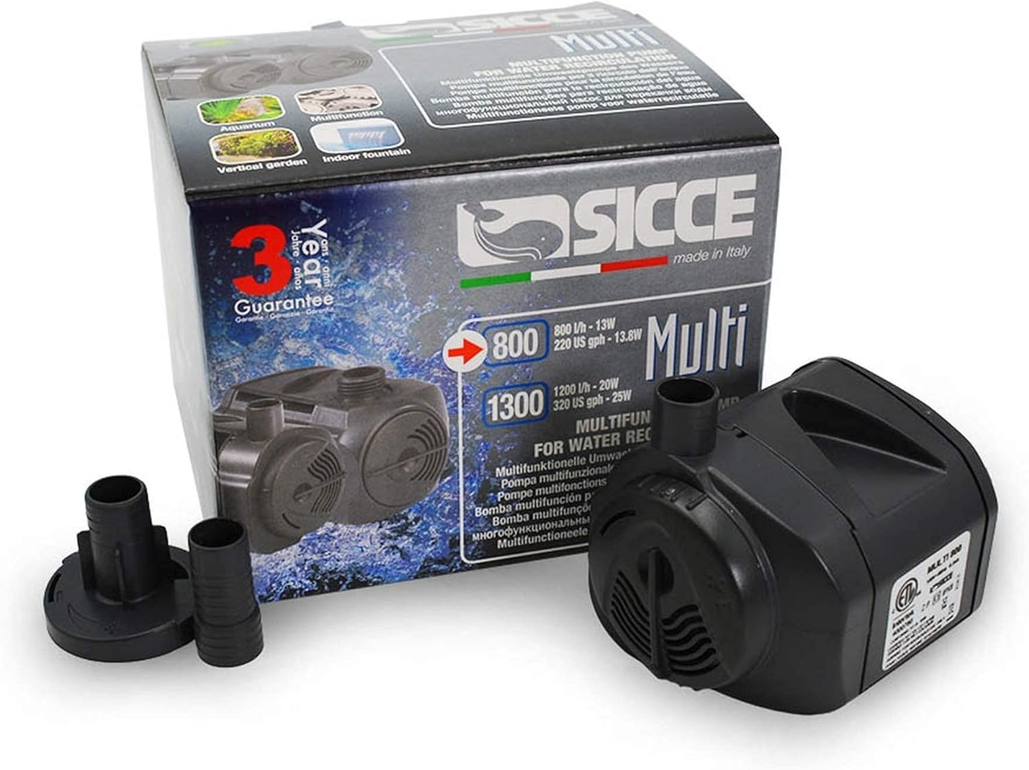 SICCE MULTI 800 Multifunction Aquarium Pump, 220 GPH, designed for submerged use, low working heat