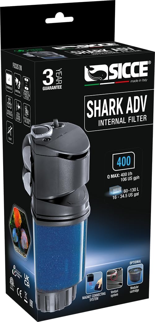 SICCE Shark ADV 400 Internal Filter, freshwater and saltwater application, for submerged use|106 GPH
