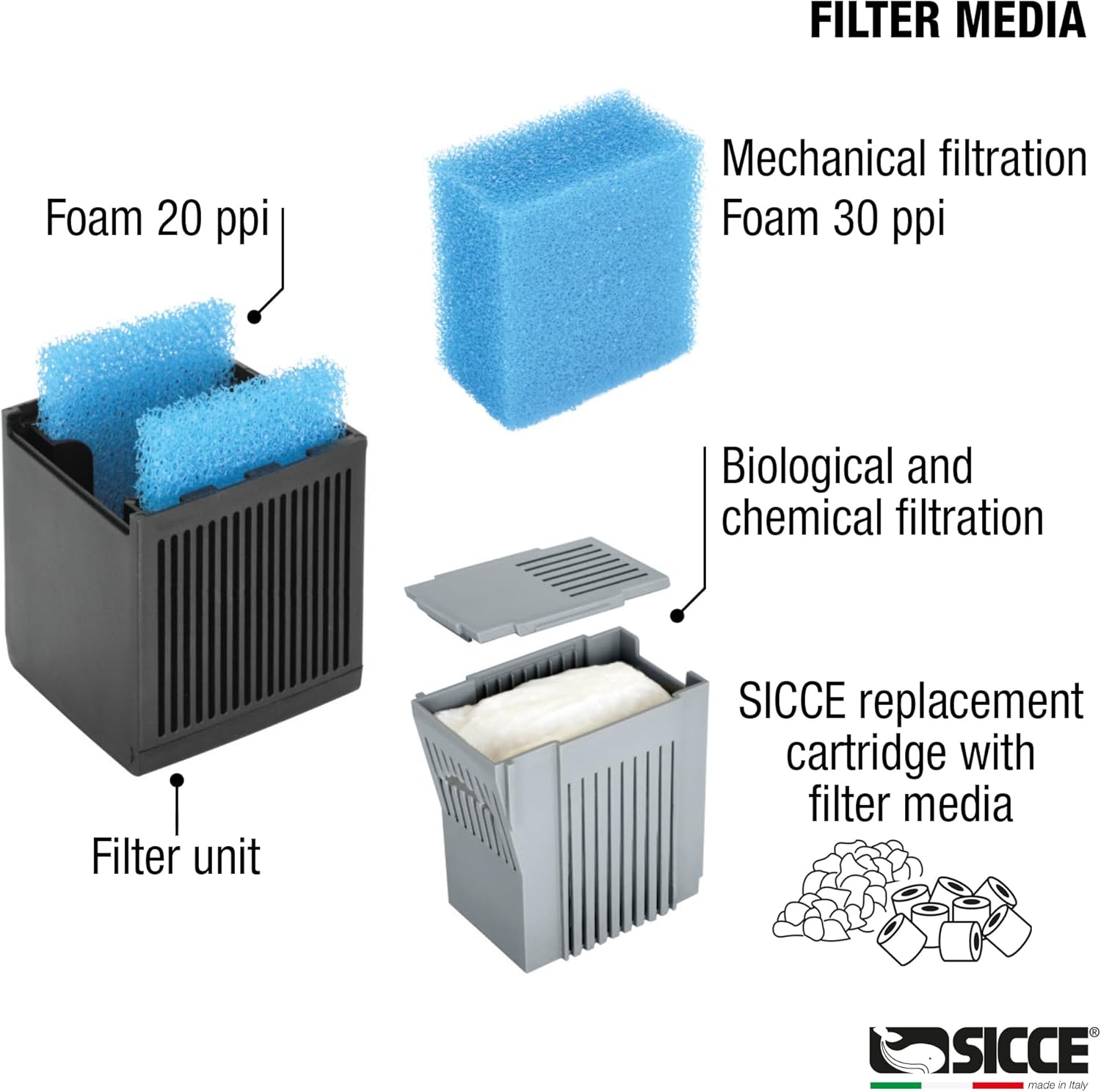 Sicce Shark PRO 700 Internal Aquarium Filter 190 GPH Submersible | Up to 53 Gallons | in-Tank Freshwater and Saltwater Application with Dual Removable Filter Cartridges | Fish Tank Turtle Terrarium