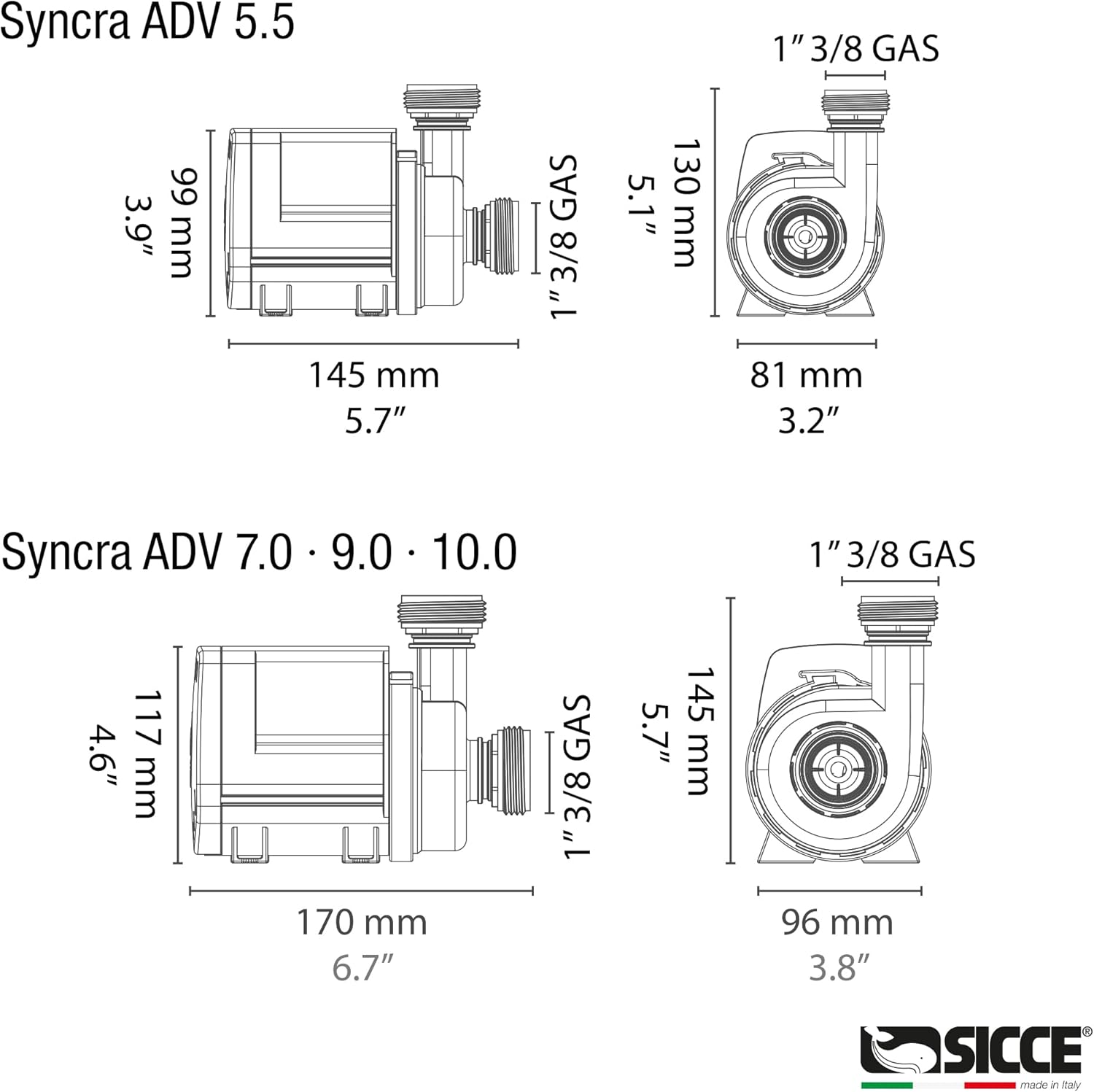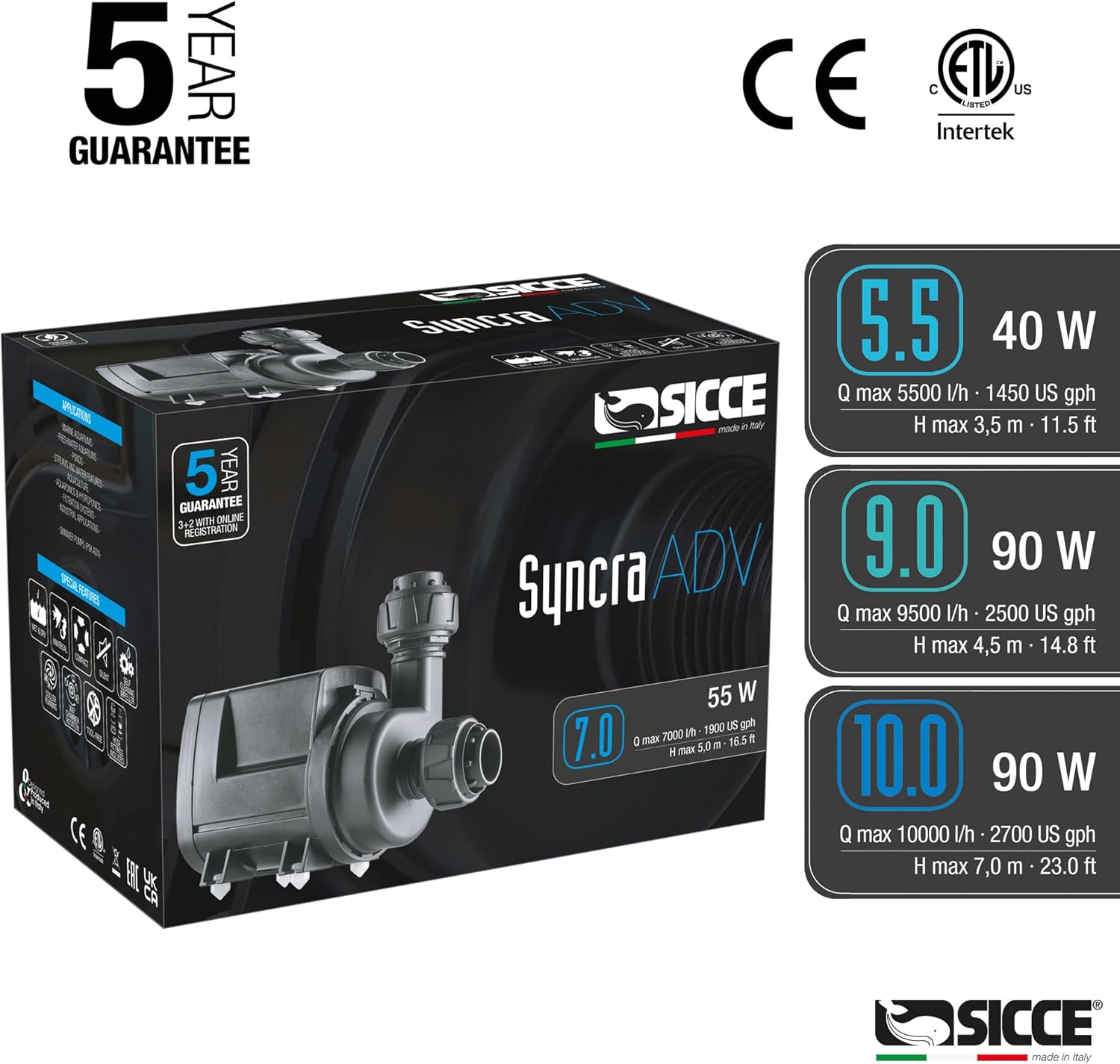SICCE Syncra ADV 10.0 Water Pump 2700 GPH Italian Made Aquarium DC Return with Controller | Quiet, Submersible or External | Fish Tank, Sump, Pond, Freshwater and Saltwater Marine Use