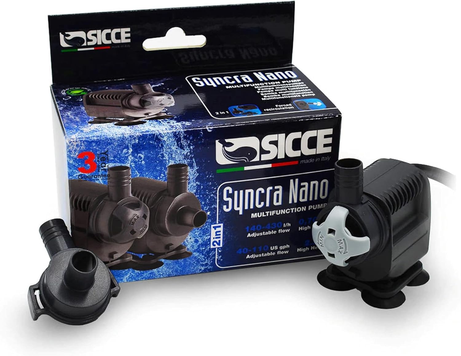 SICCE Syncra Silent NANO Multifunction 110 GPH Submersible Water Pump | Italian Made 2.8W Ultra Quiet Durable Aquarium Fish Tank, Fountain, Pond, Hydroponics, Terrarium Black | Freshwater & Saltwater