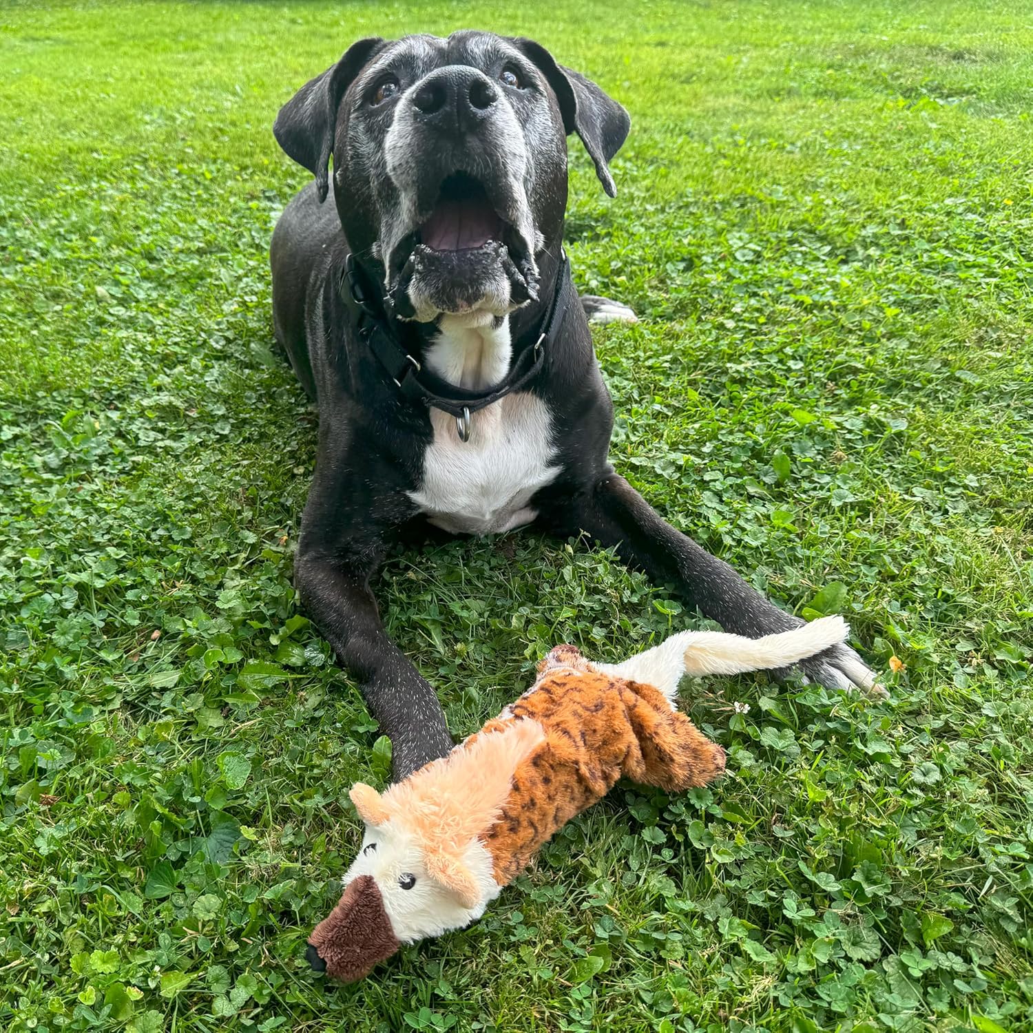 Skinneeez Big Bite Jackal, Stuffingless Dog Toy with Squeaker and Crunch Bottle, for Moderate Chewers, 18in Interactive Chew Toy