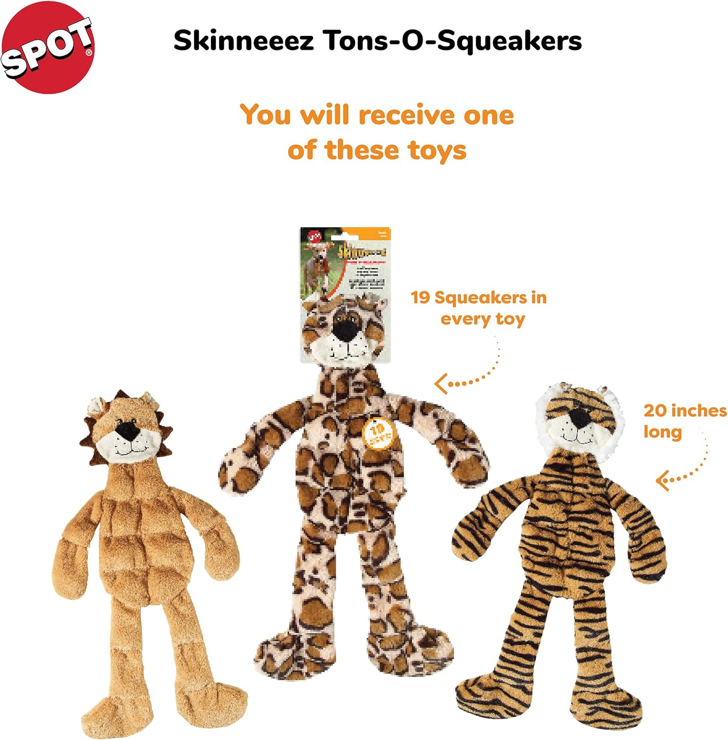 Skinneeez Tons-O-Squeakers Jungle Cat Dog Toy - 19 Squeakers for Tons-O-Fun! Stuffing-Free Design Perfect for Moderate Chewers, Tug Toy for Medium to Large Puppies & Dogs - 20in, Style May Vary