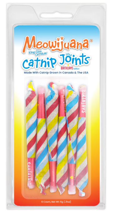 Celebrate your cat's special day with Meowijuana Birthjays - party-sized catnip joints for endless feline fun and excitement!