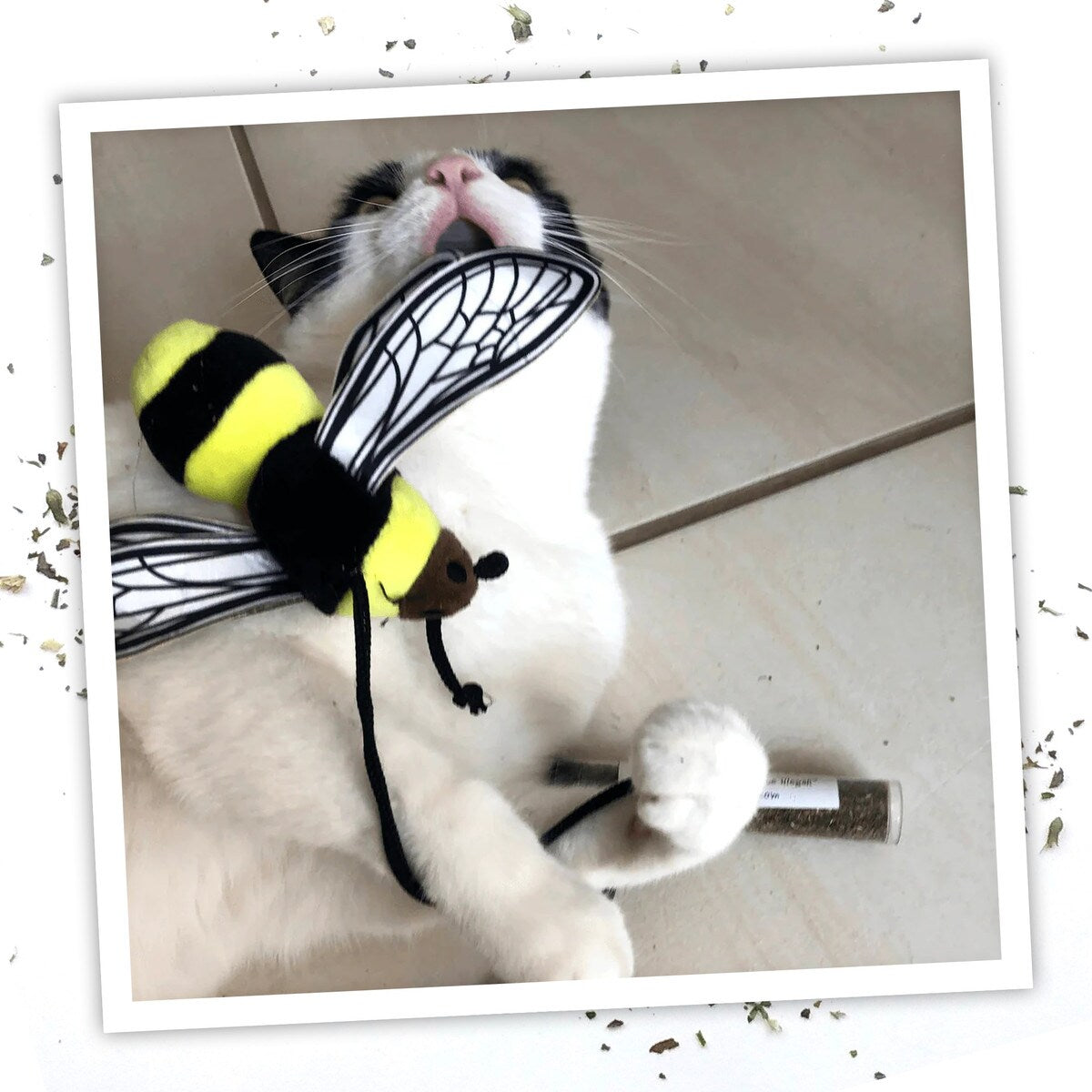 Treat your cat to buzzing fun with the Meowijuana Get Buzzed Bee Refillable Wand Toy - purr-fect for playtime and catnip refills!