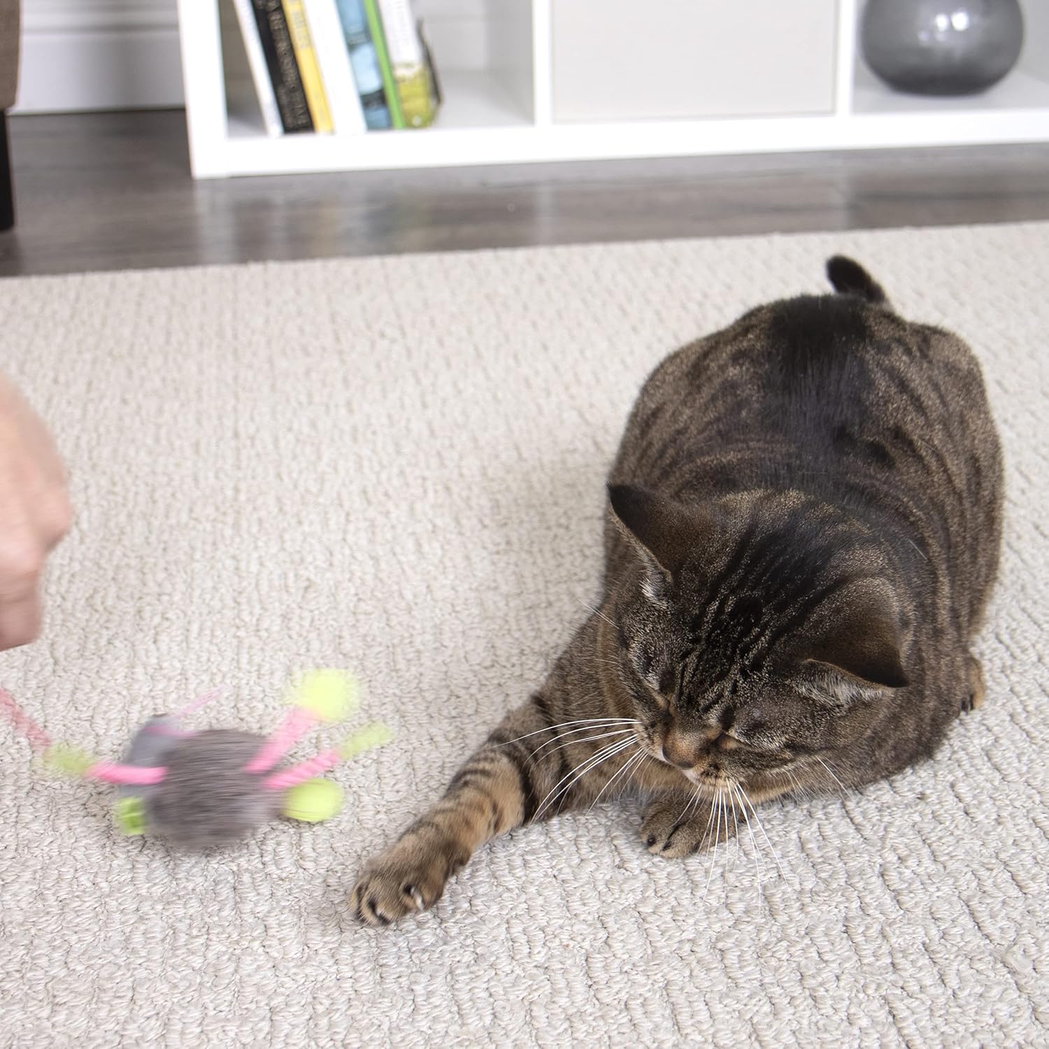 ENTICES CATS: The Bouncy Mouse teaser toy bobs and bounces at the end of a stretchy elastic...