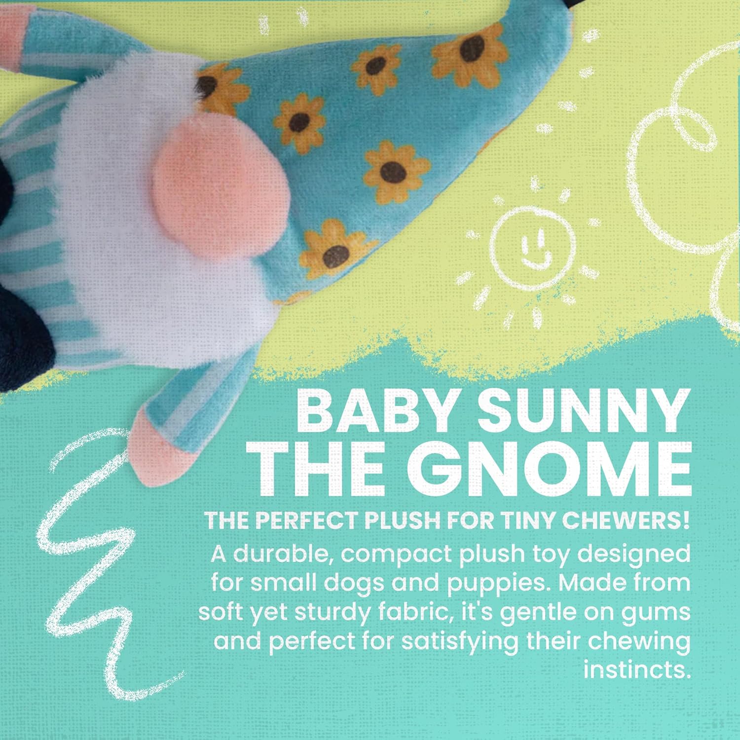 Snugarooz Baby Sunny Small Gnome Plush Toy with Repair Patch – Gentle and Durable Squeaky Dog Toy for Small Breeds – Ideal for Biting and Play – Made from Recycled Materials