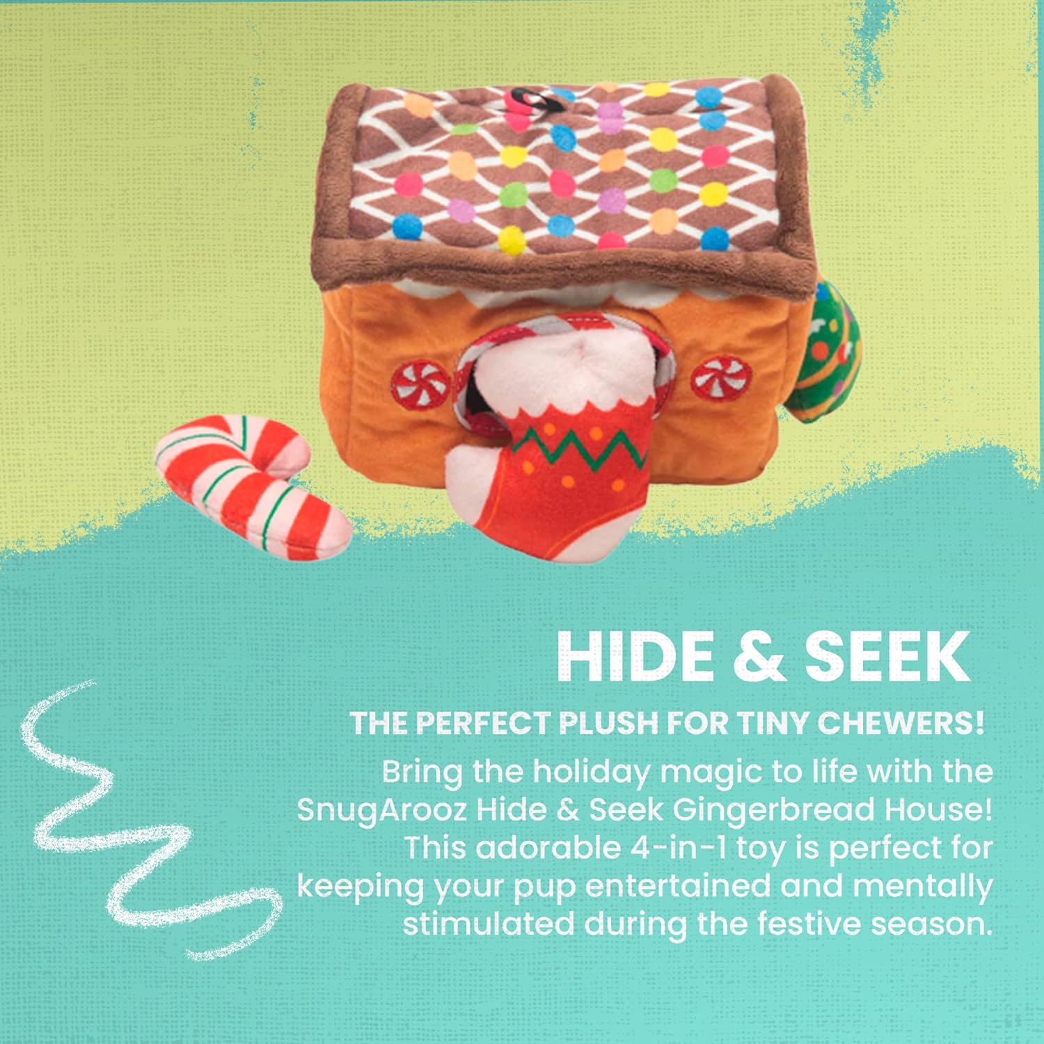 Snugarooz Hide & Seek House with Repair Patch - 4-in-1 Plush Dog Toy Set Made from Recycled Bottles - Engaging Interactive Fun