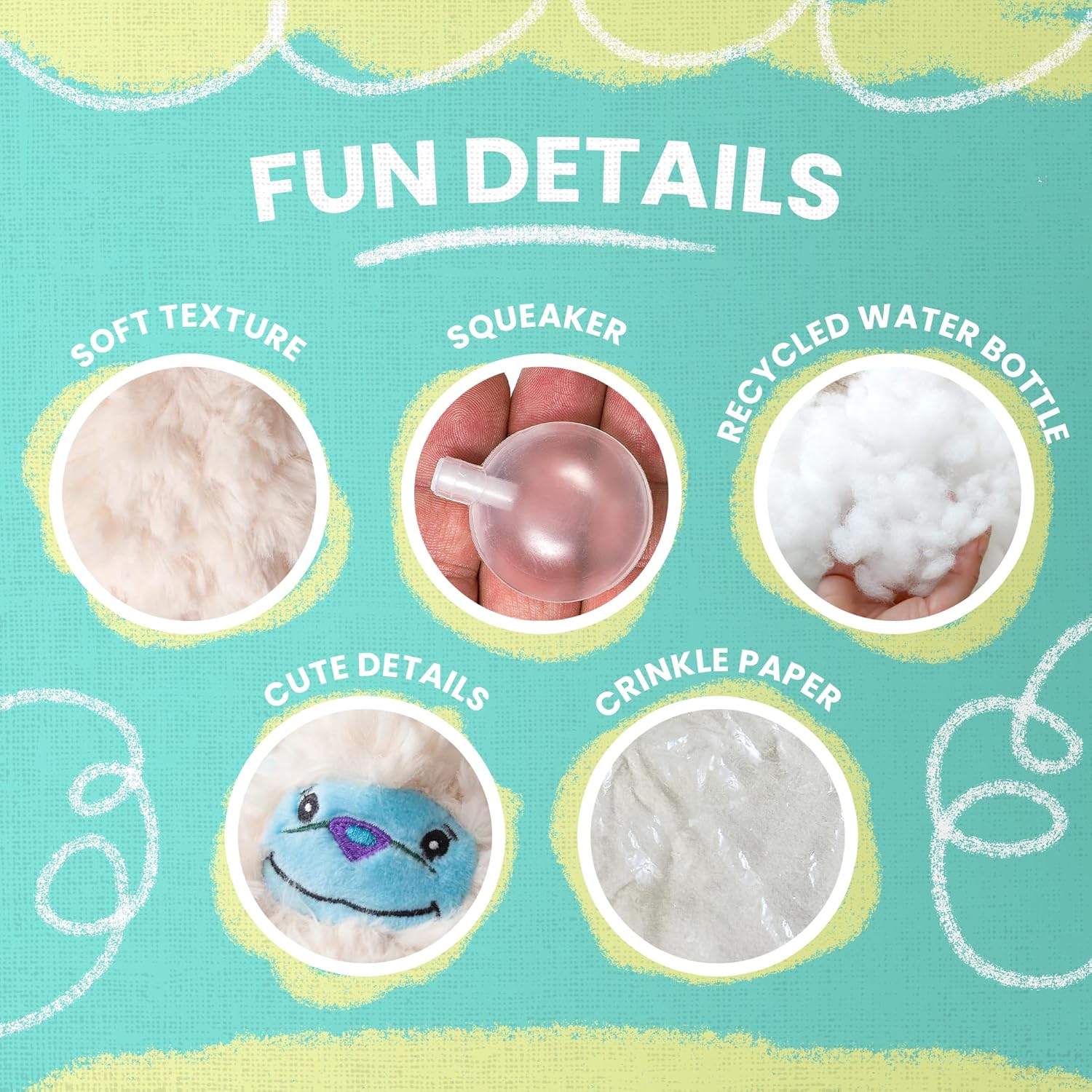 Snugarooz Tom Yeti with Repair Patch – Soft and Cuddly Plush Toy with Built-in Squeaker – Durable Chew Toy for Dogs – Made from Recycled Bottles for Responsible Play