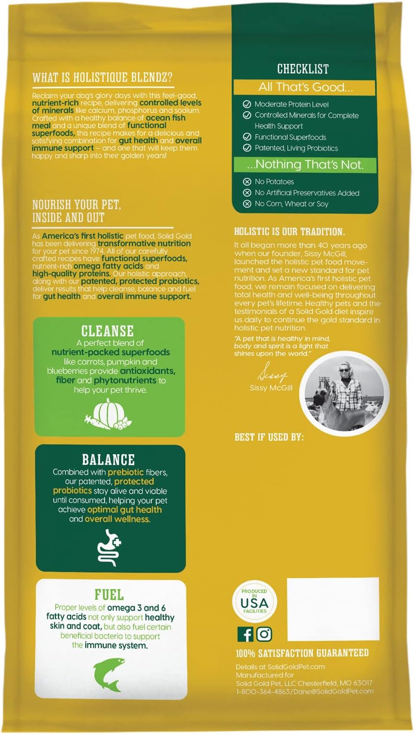 Solid Gold Dry Dog Food for Adult & Senior Dogs - Made with Oatmeal, Pearled Barley, and Fish Meal - Holistique Blendz Potato Free High Fiber Dog Food for Sensitive Stomach & Immune Support 24-lb