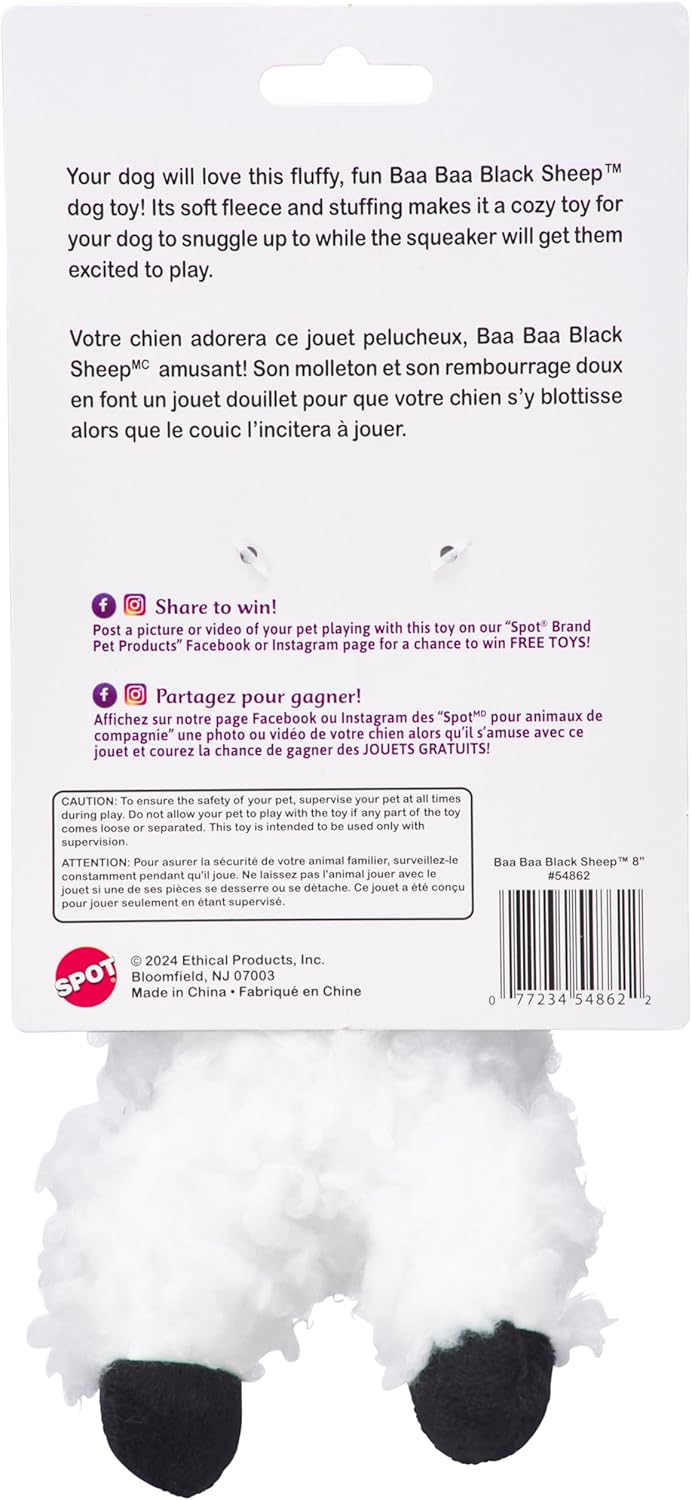 SPOT Baa Baa Black Sheep Plush Dog Toy - Cute and Cuddly Fleece Toy with Squeaker, Black and White Lamb