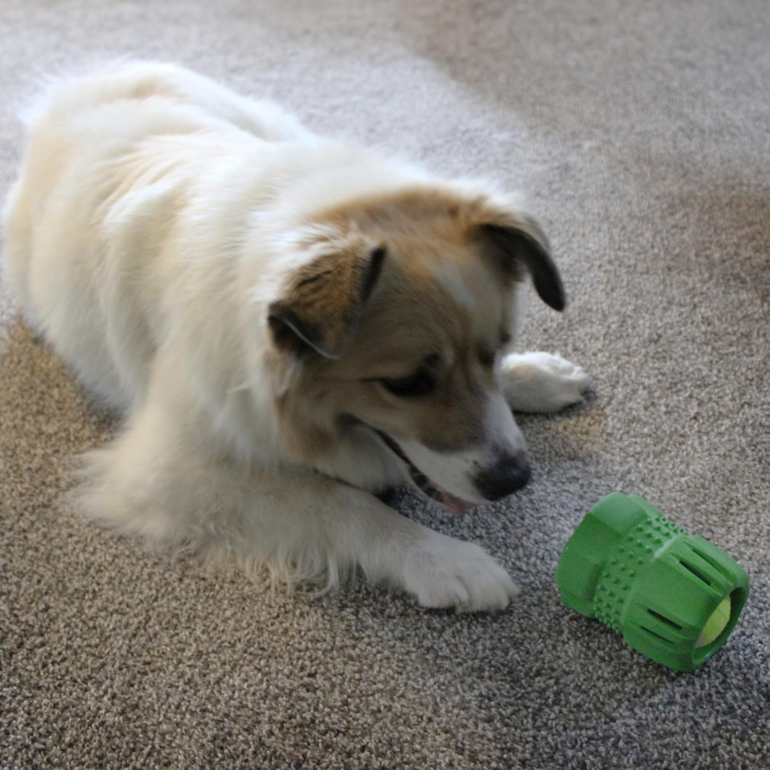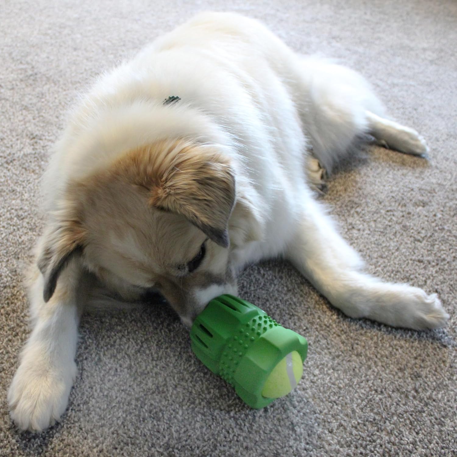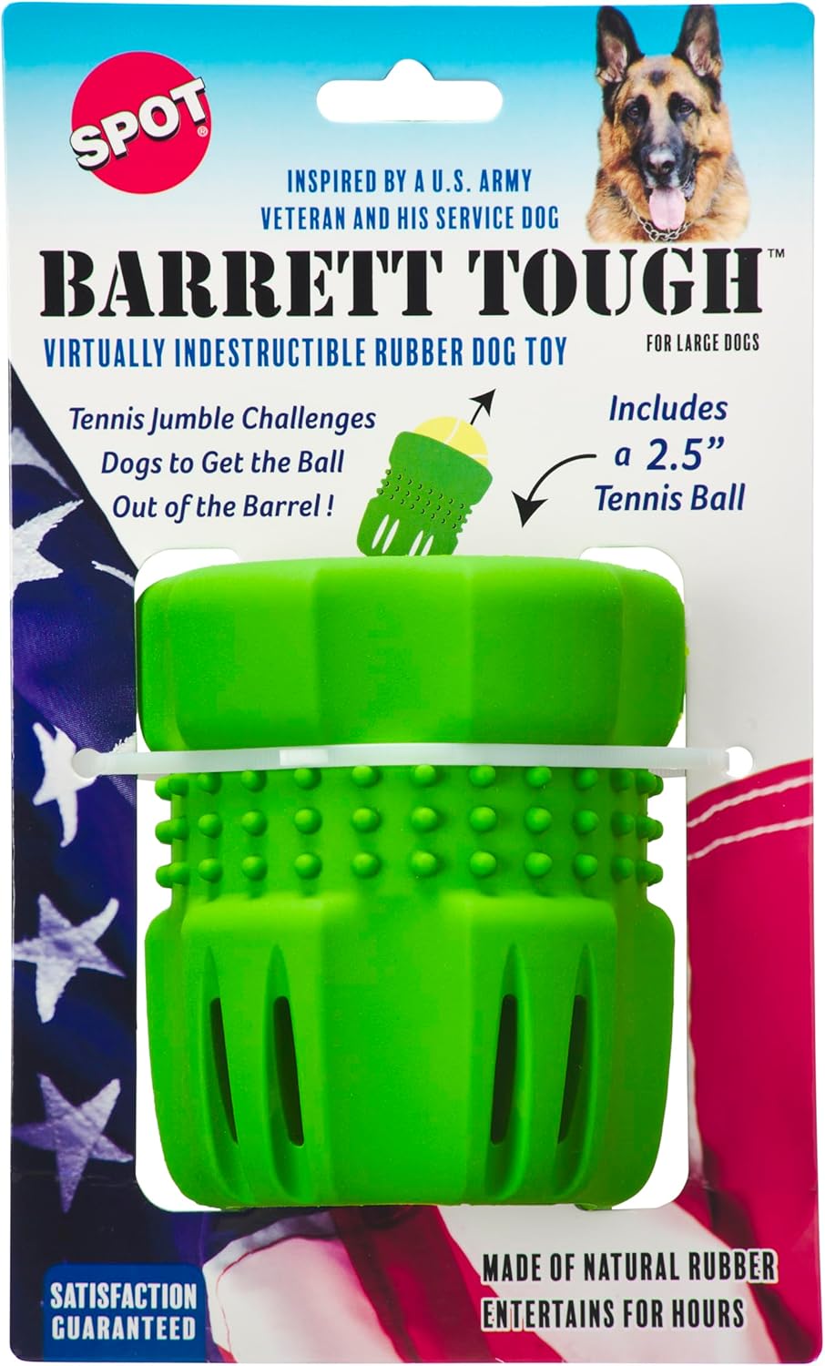 SPOT Barrett Tough Tennis Jumble Dog Toy for Large Dogs - Durable Rubber Barrel & Ball Combo, Virtually Indestructible Puzzle Toy with Textured Surface for Dental Health, 4 in Barrel & 2.5 in Ball
