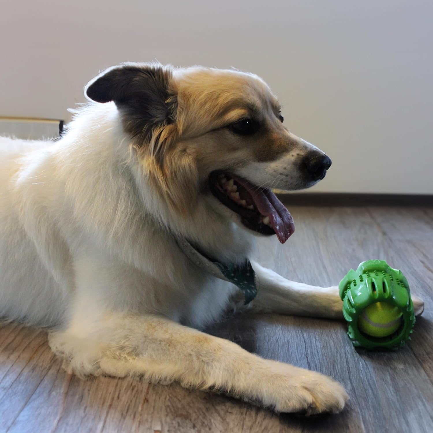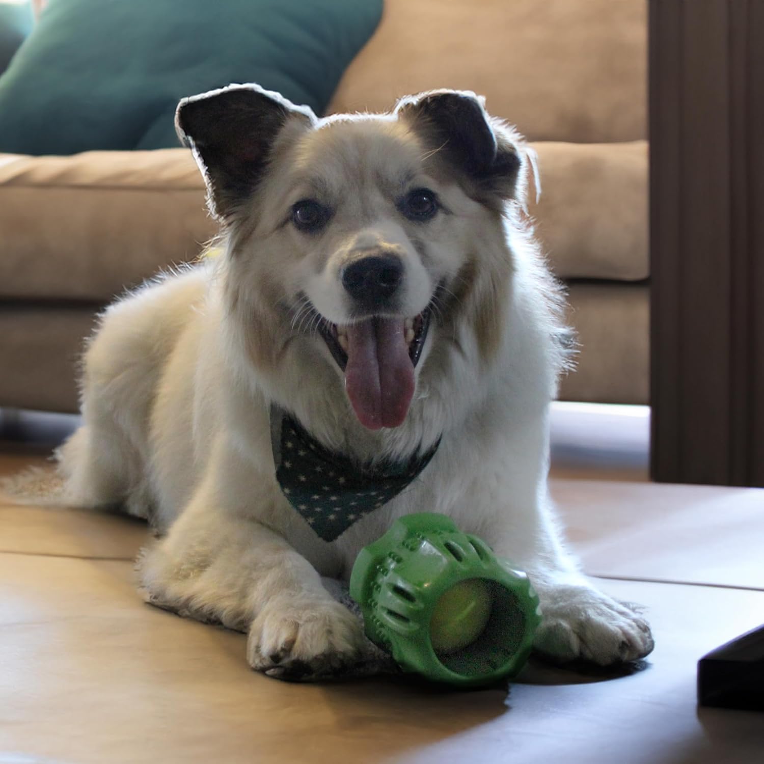 Interactive Challenge: The SPOT Barrett Tough Tennis Jumble engages dogs by challenging them to retrieve the ball...